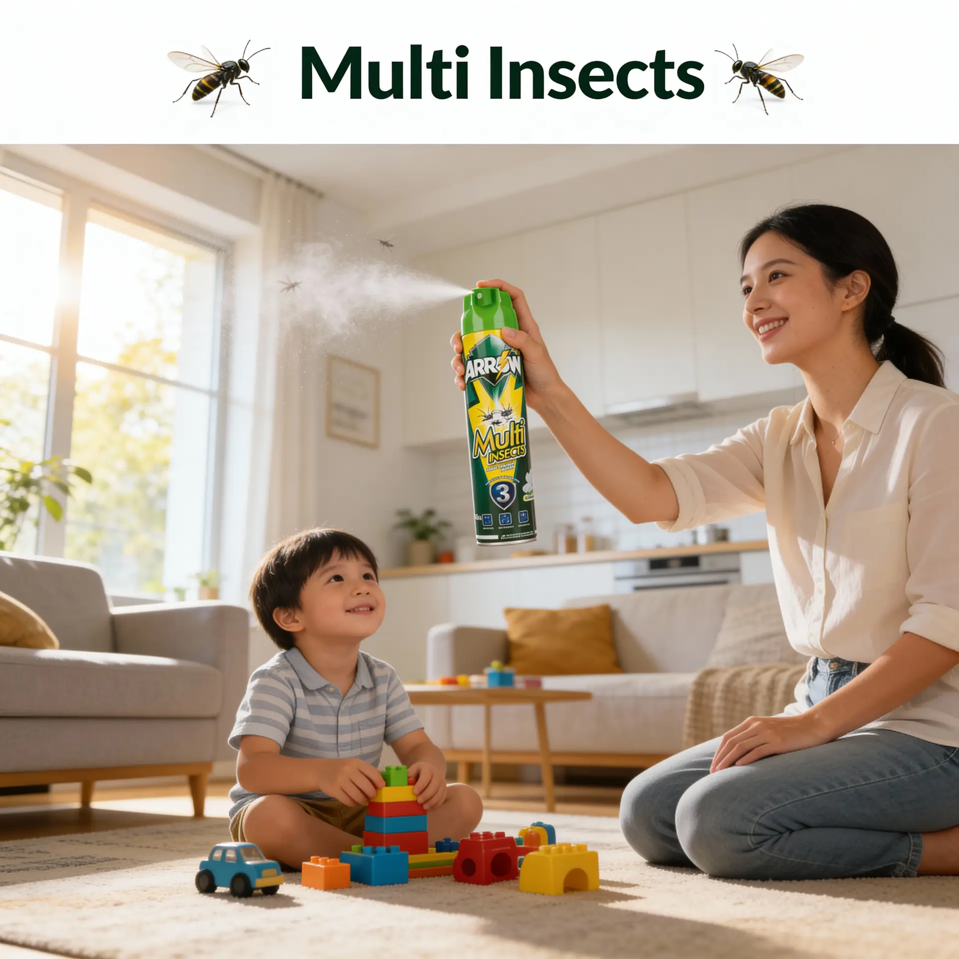 “One spray for many problems – ARROW Multi Insects helps protect your home from mosquitoes, flies and cockroaches.”