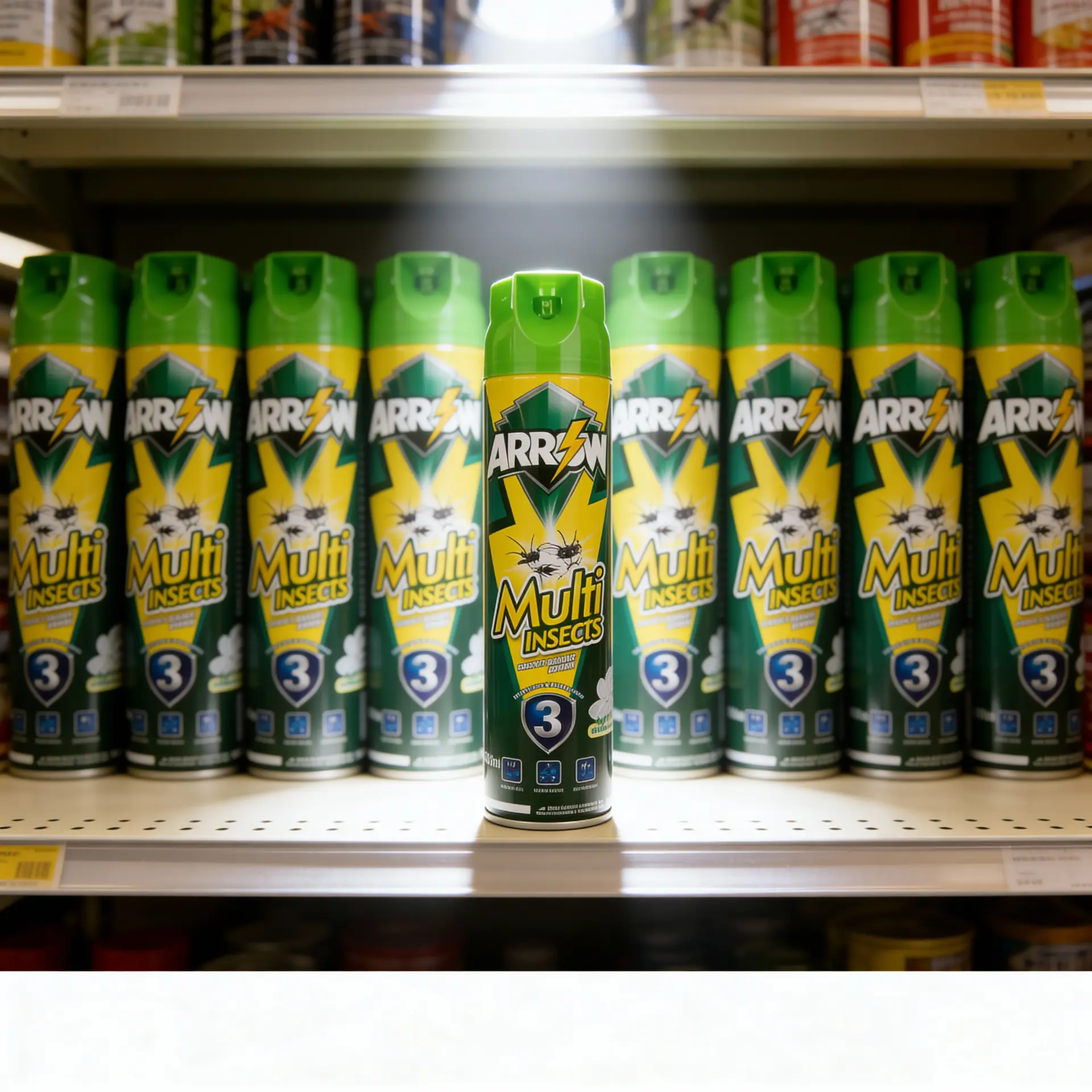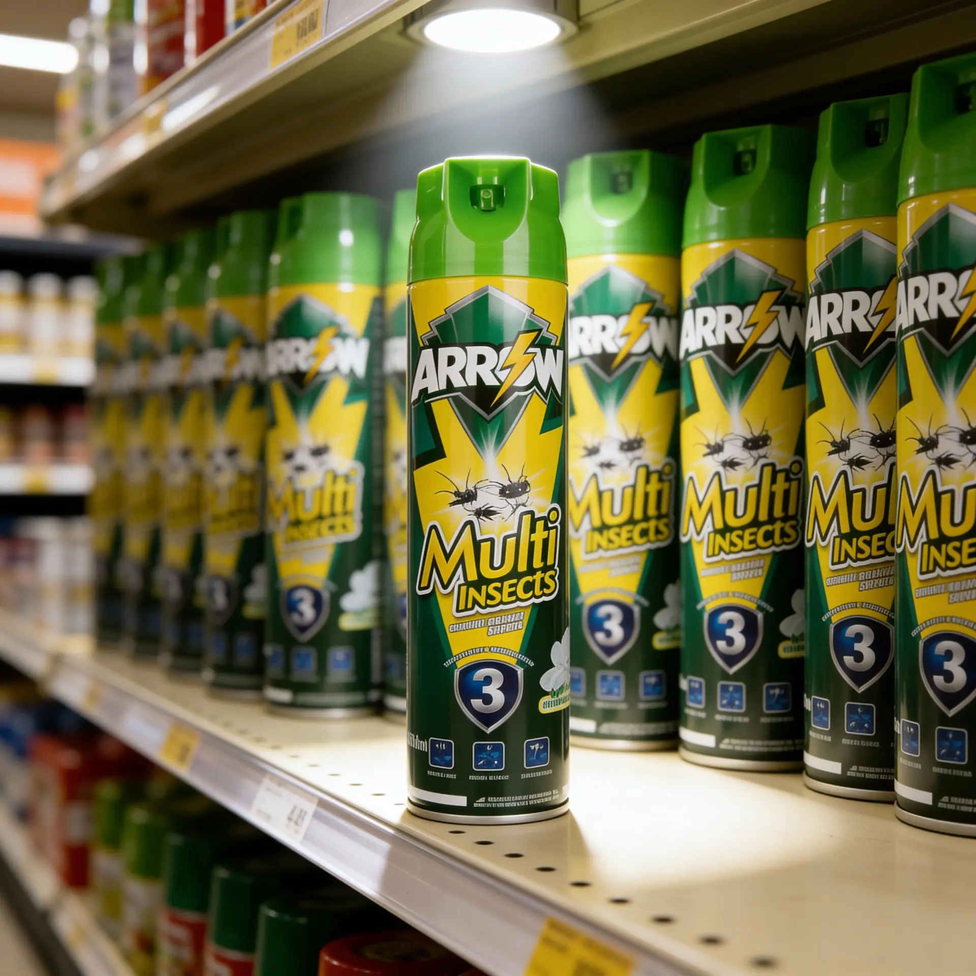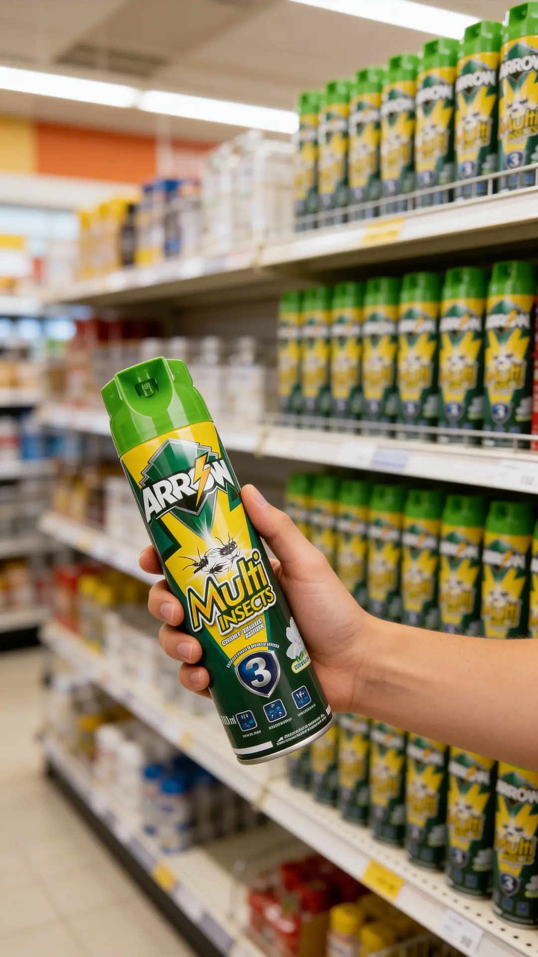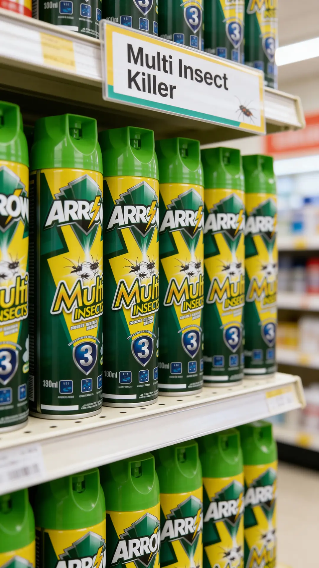 Positioned as a value-for-money branded spray, ARROW Multi Insects sits above unbranded low-quality aerosols but remains competitive with mainstream local brands in mass retail channels.