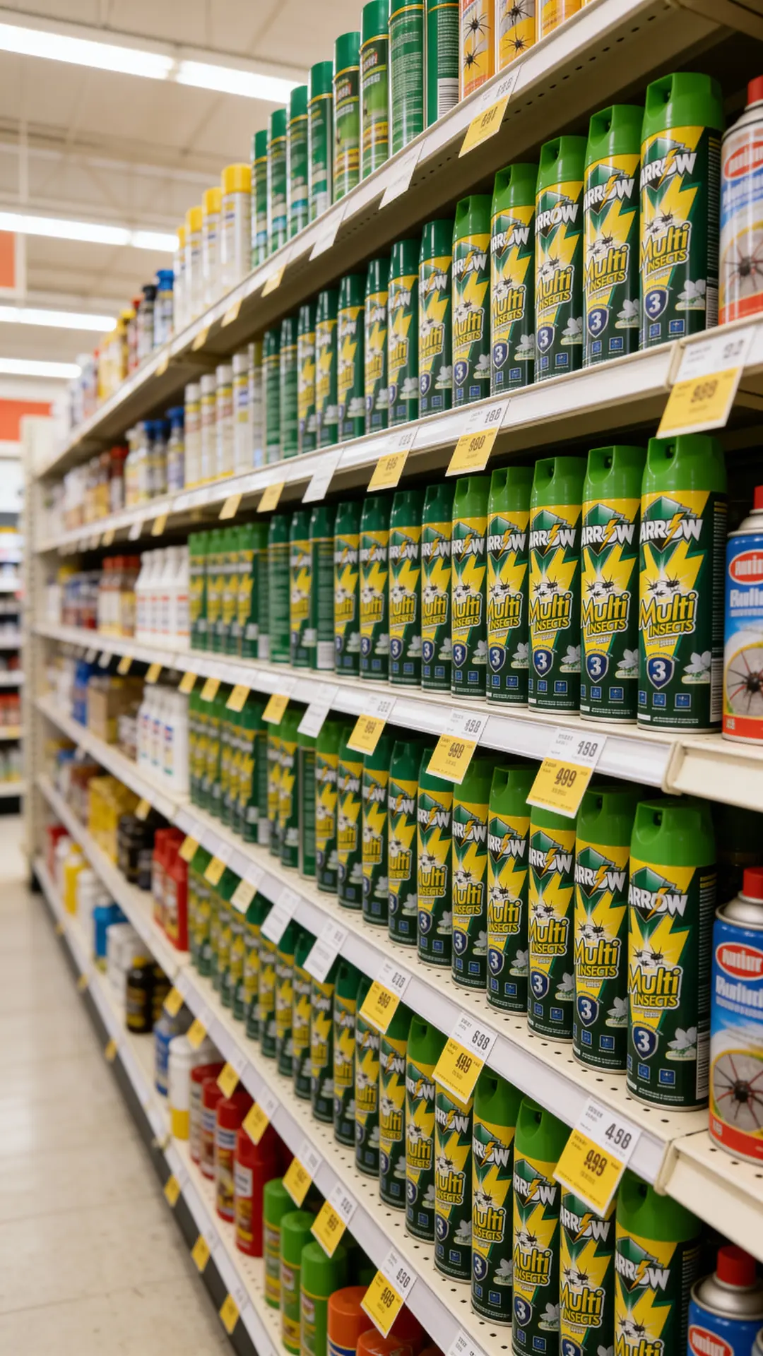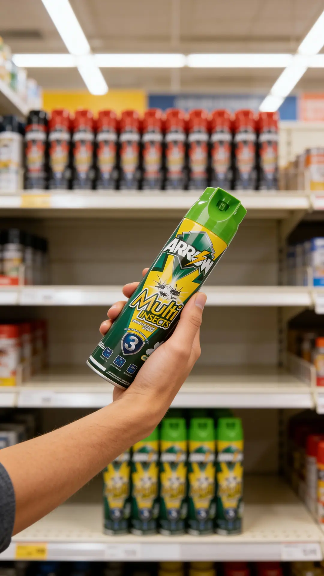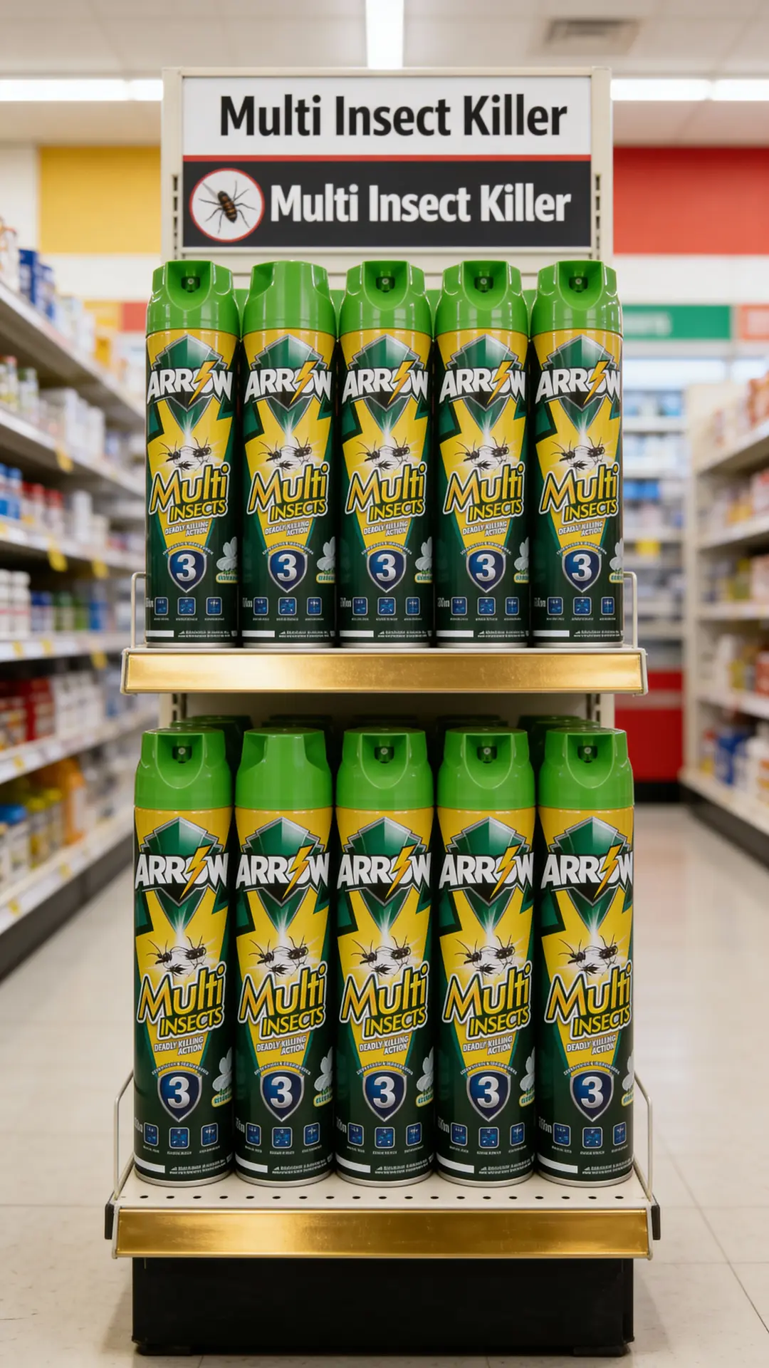 Positioned as a value-for-money branded spray, ARROW Multi Insects sits above unbranded low-quality aerosols but remains competitive with mainstream local brands in mass retail channels.