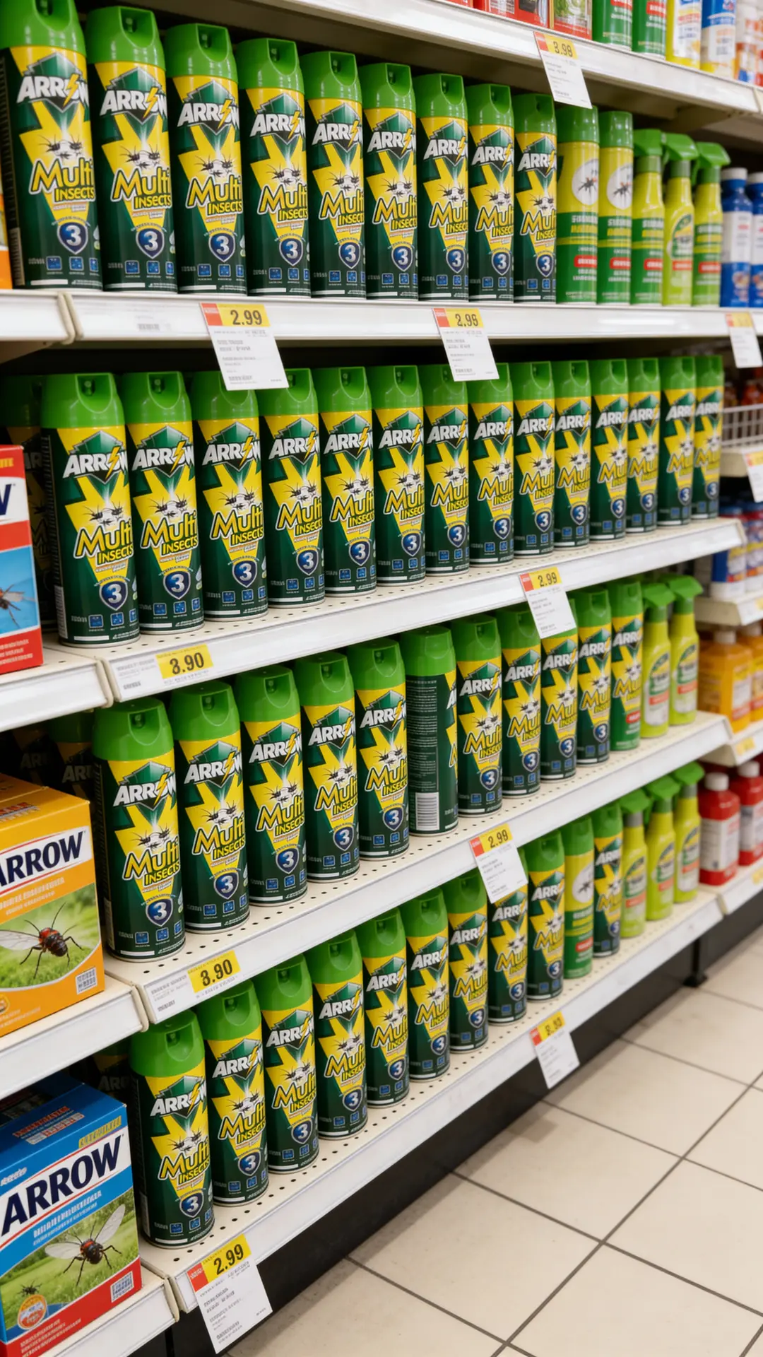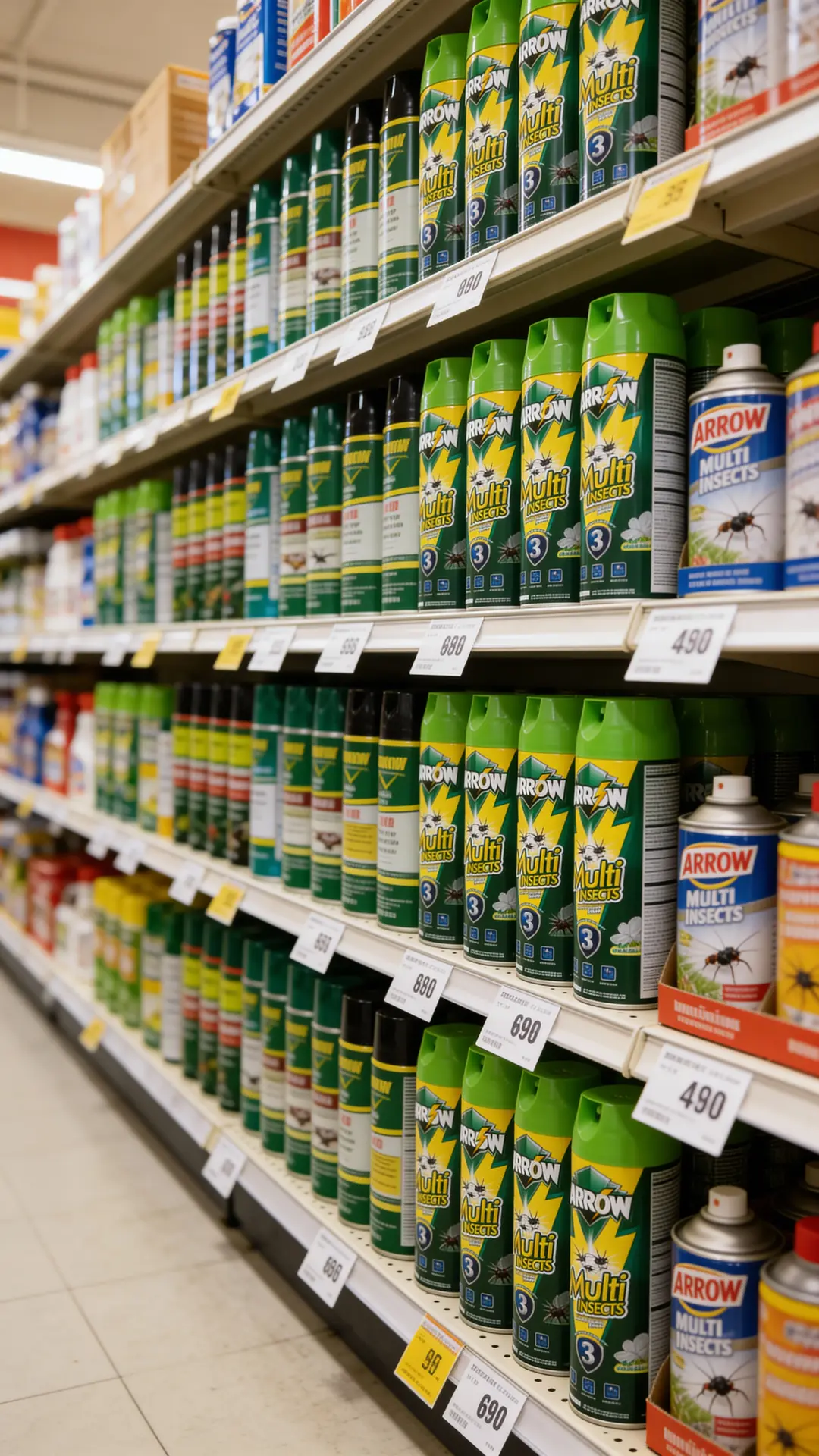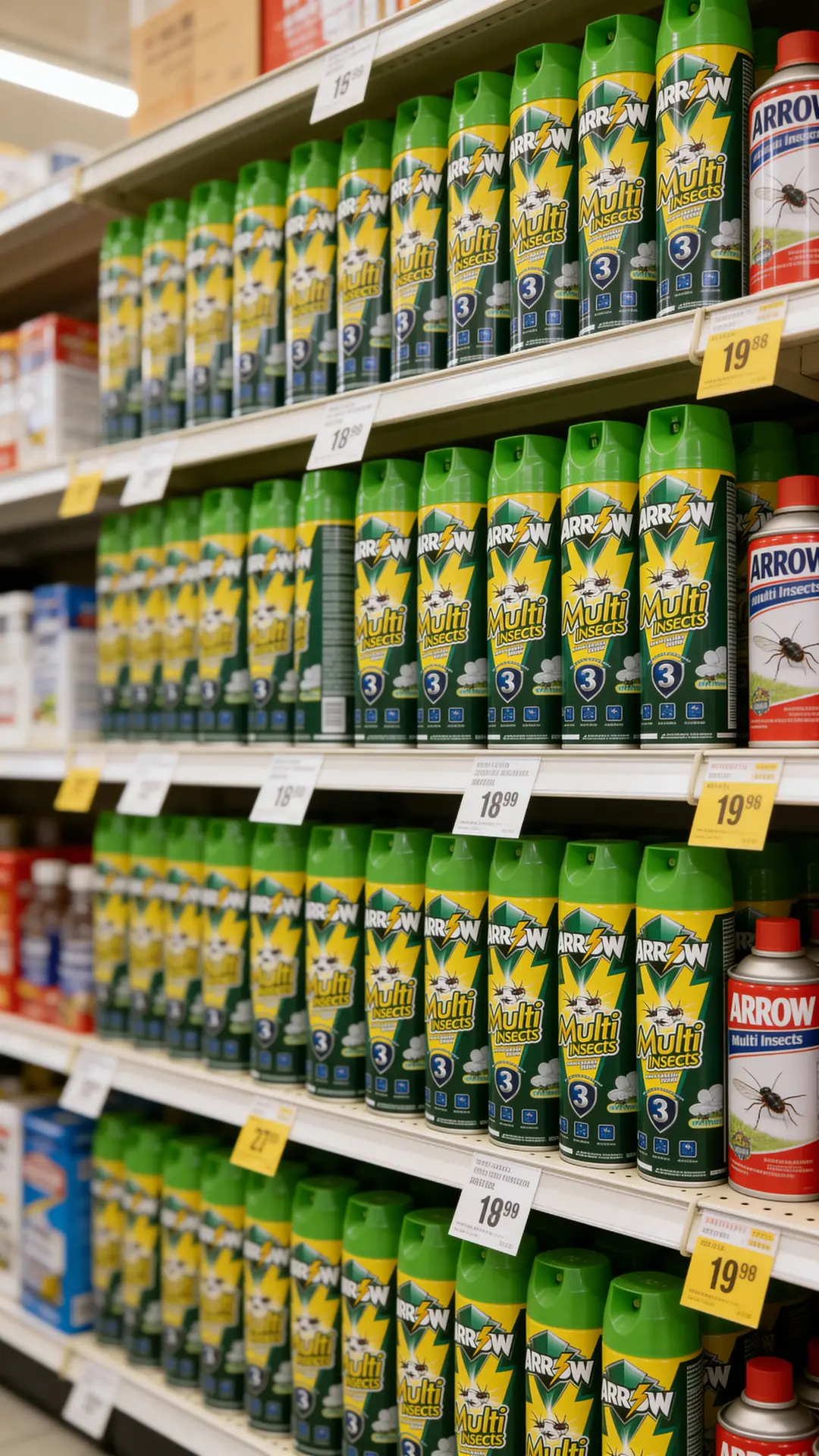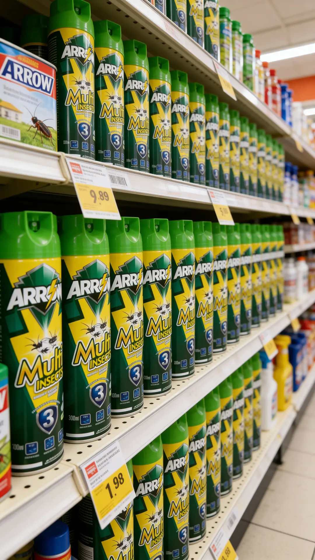 Positioned as a value-for-money branded spray, ARROW Multi Insects sits above unbranded low-quality aerosols but remains competitive with mainstream local brands in mass retail channels.