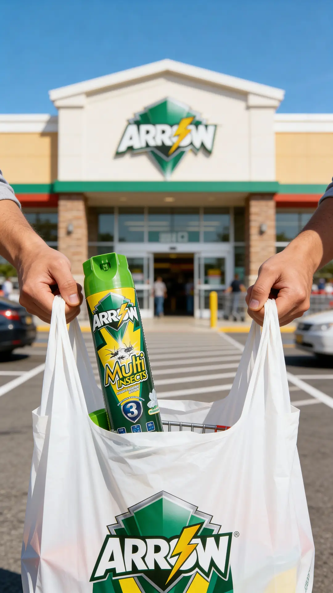 With its bright orange–yellow design and strong ARROW shield logo, it creates an instant brand block in the insecticide aisle and is easy for consumers to remember.