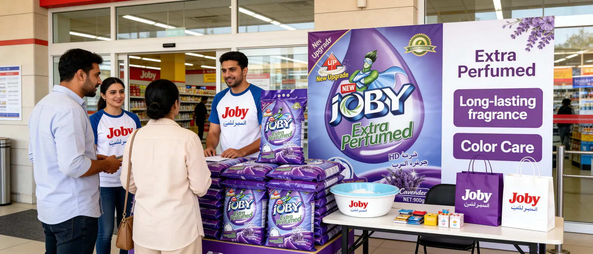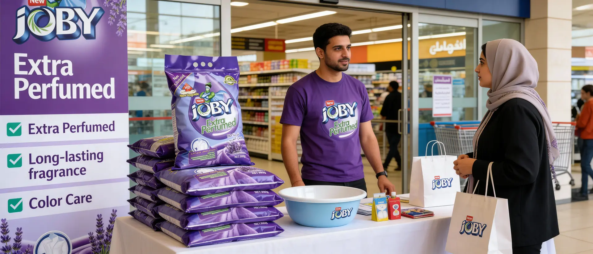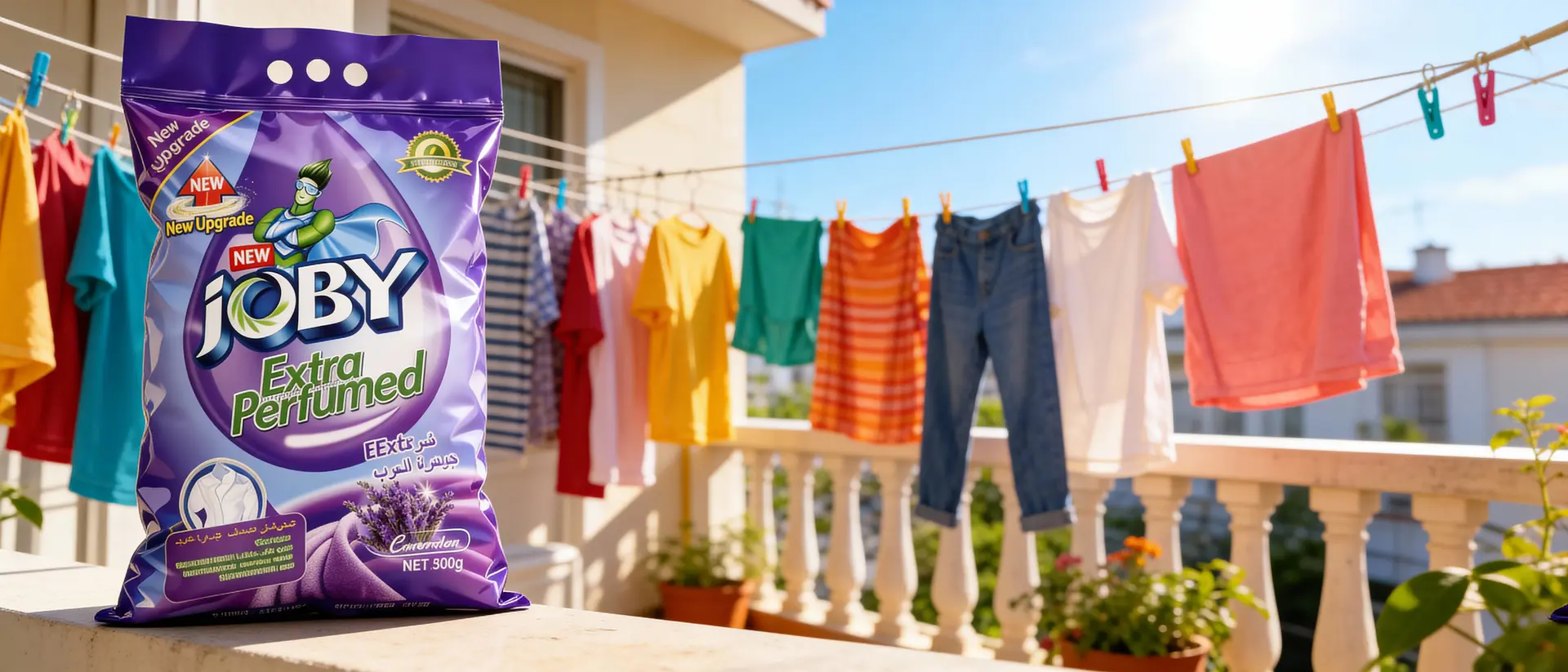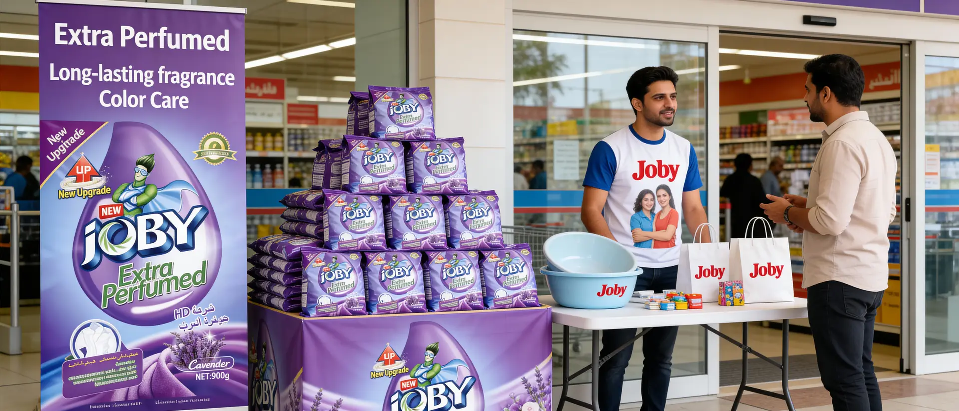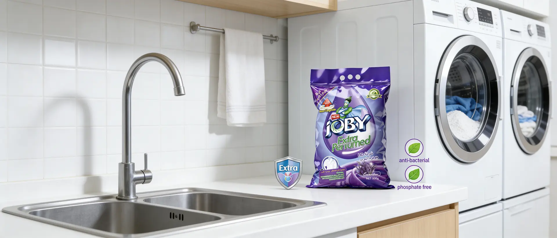 Try JOBY Extra Perfumed Washing Powder – rich foam, deep clean and fragrance that shoppers love.