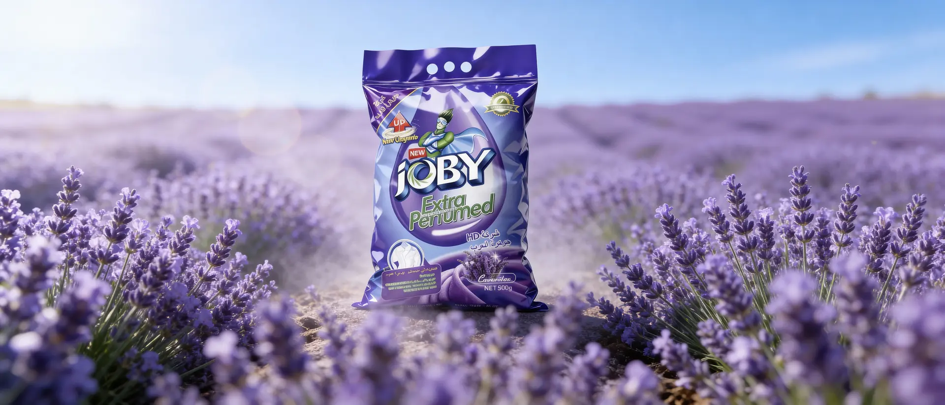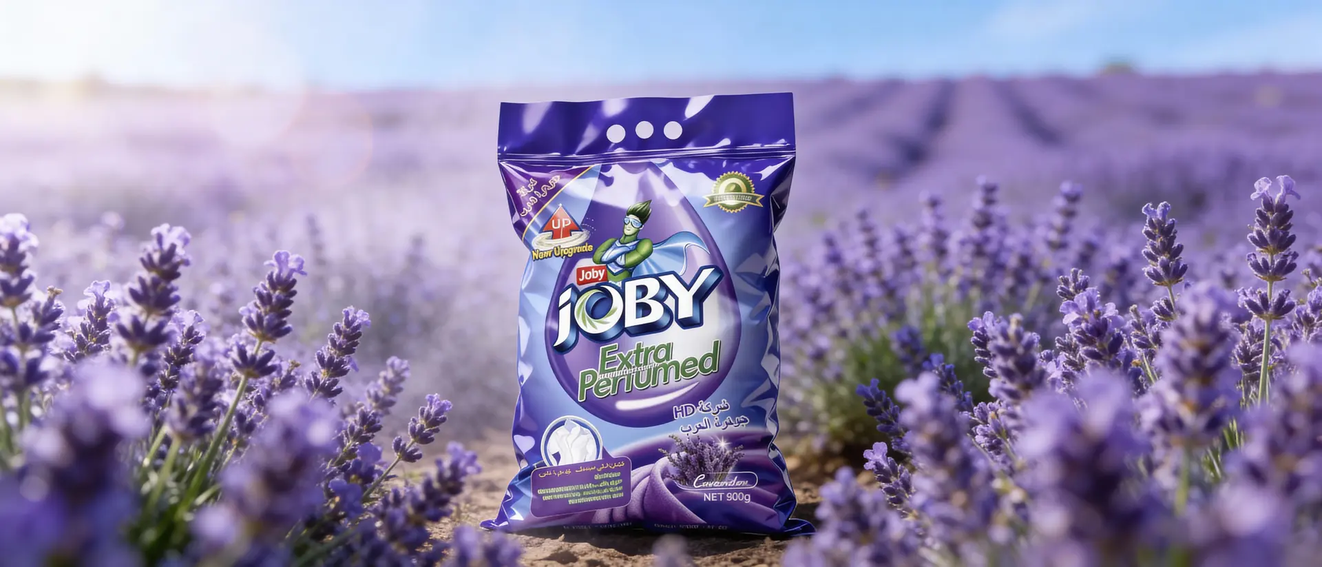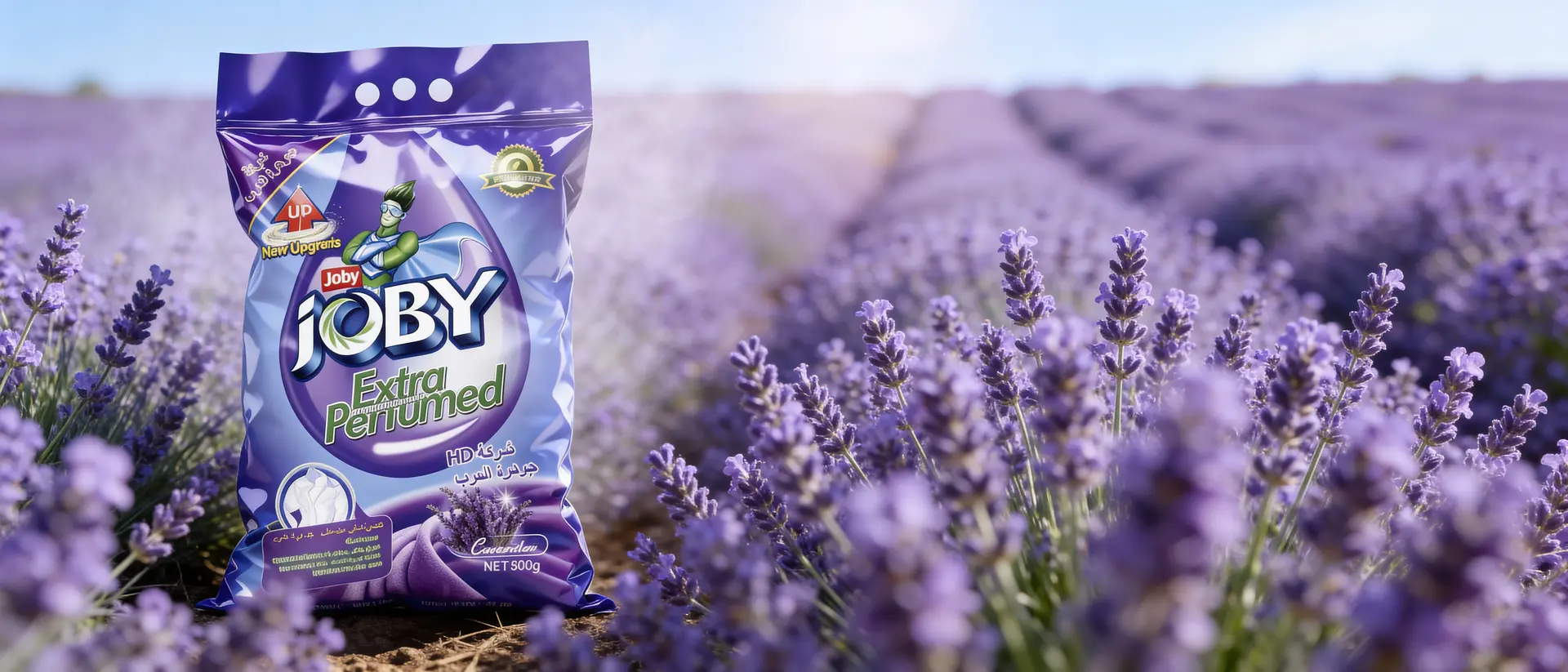 Meet JOBY Extra Perfumed Washing Powder – rich foam, long-lasting lavender fragrance and deep cleaning in every scoop.