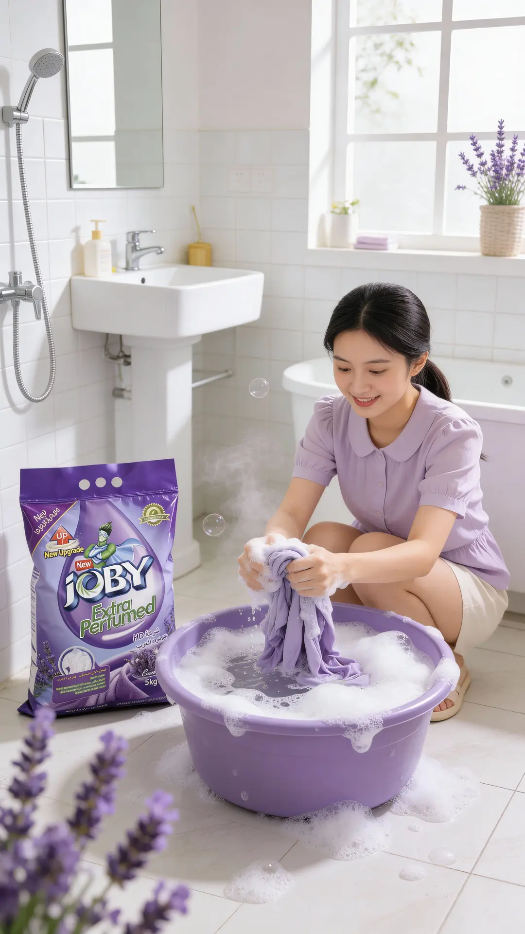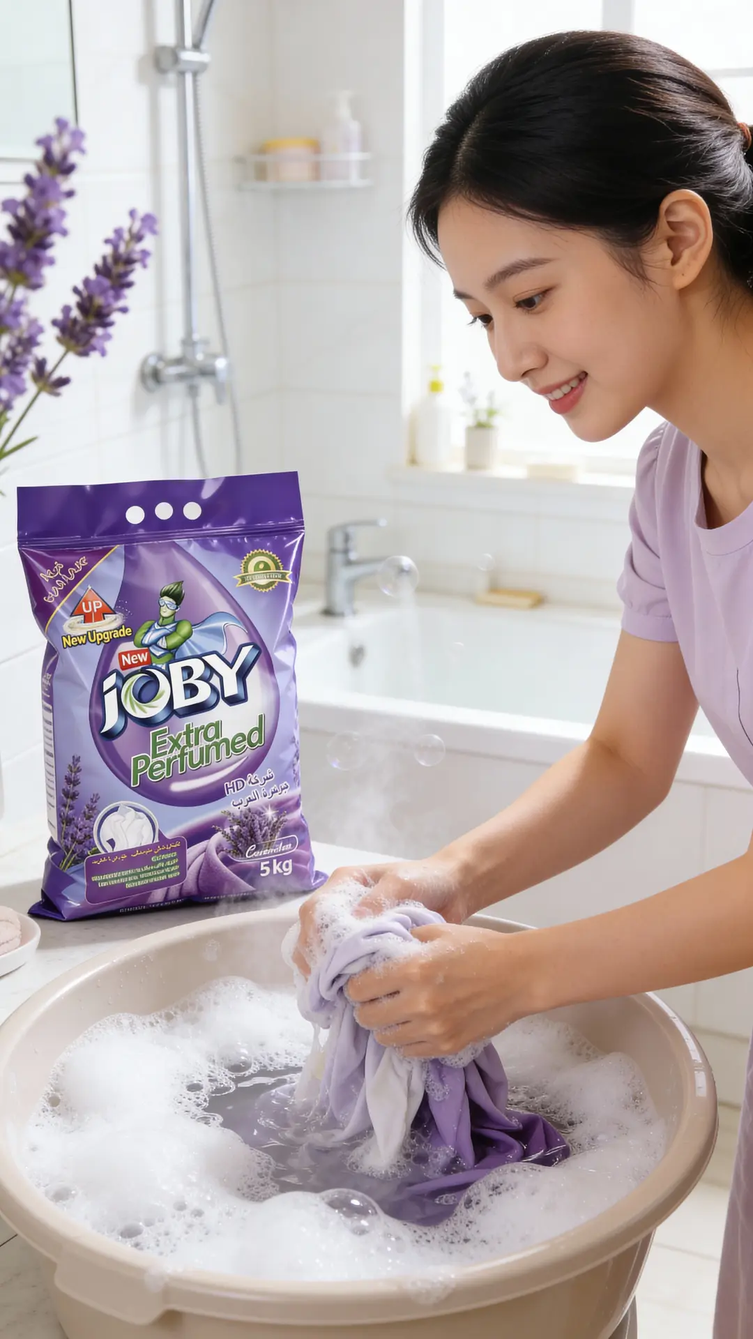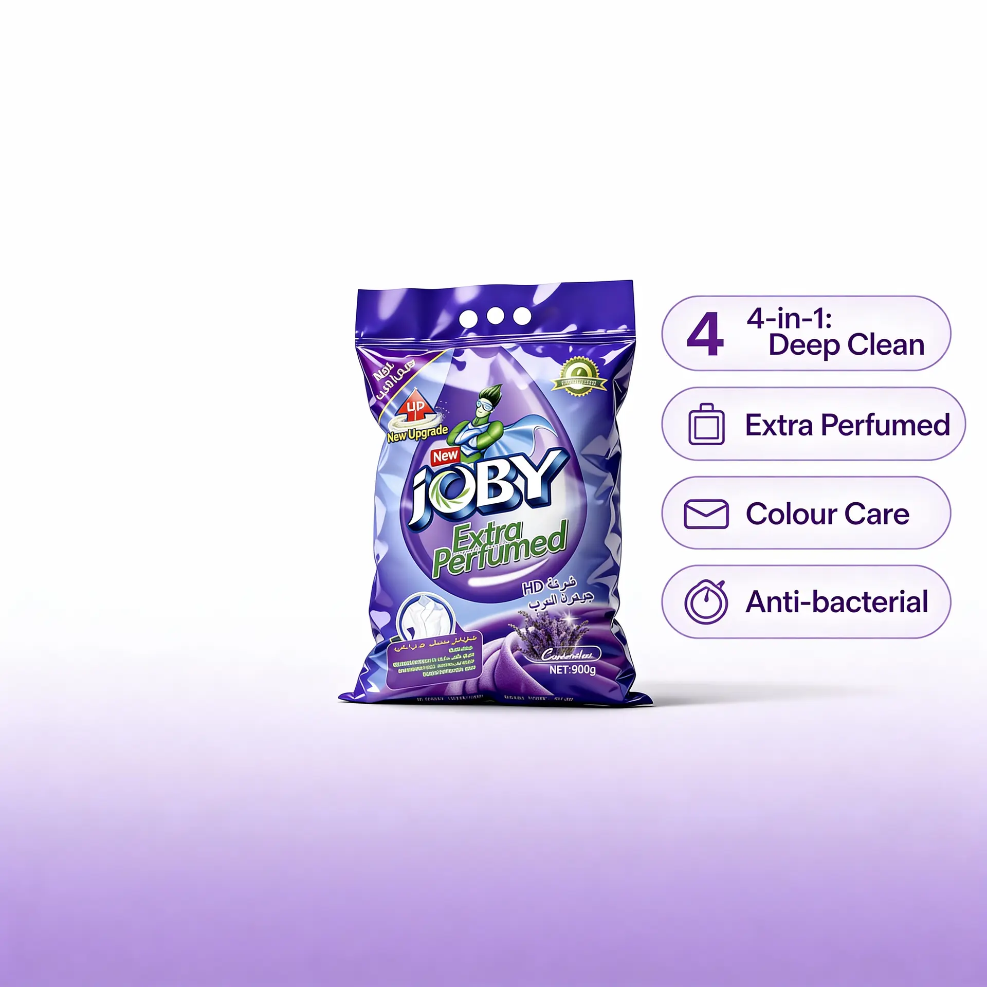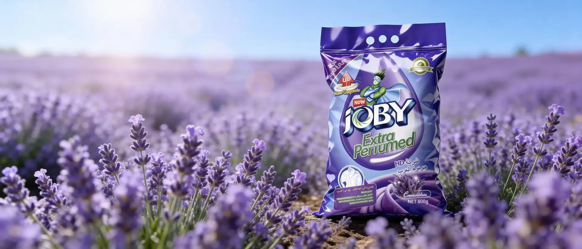 Meet JOBY Extra Perfumed Washing Powder – rich foam, long-lasting lavender fragrance and deep cleaning in every scoop.