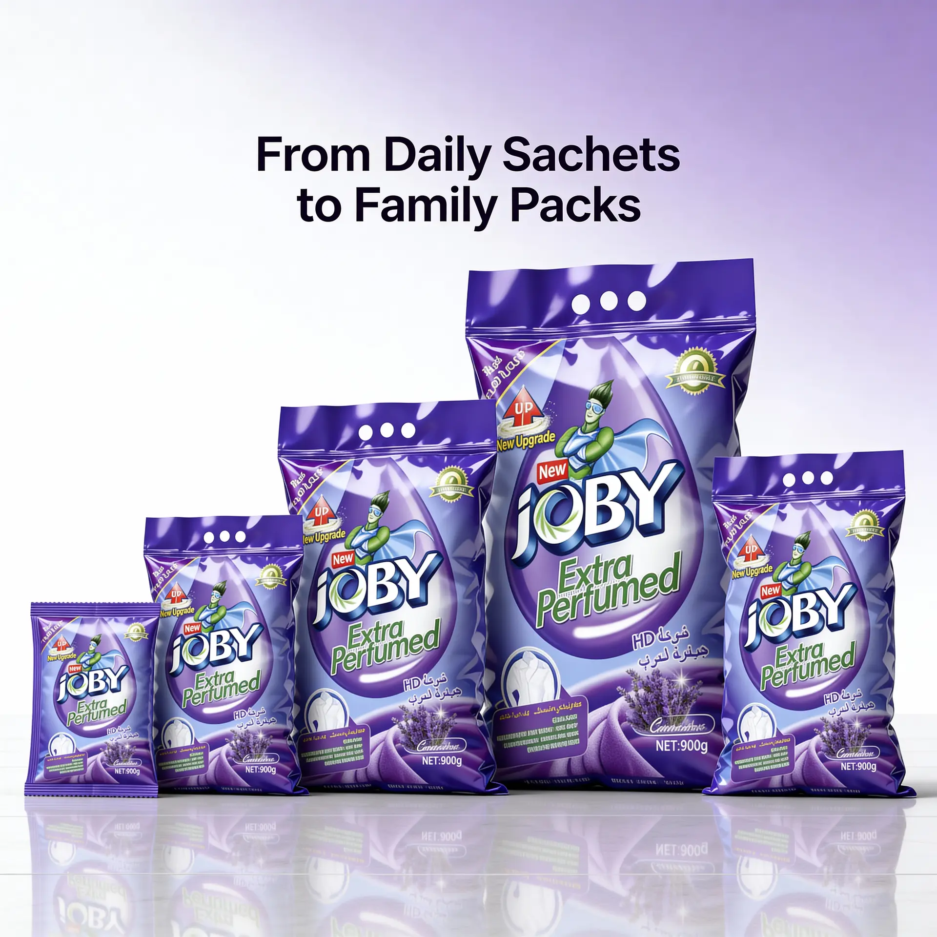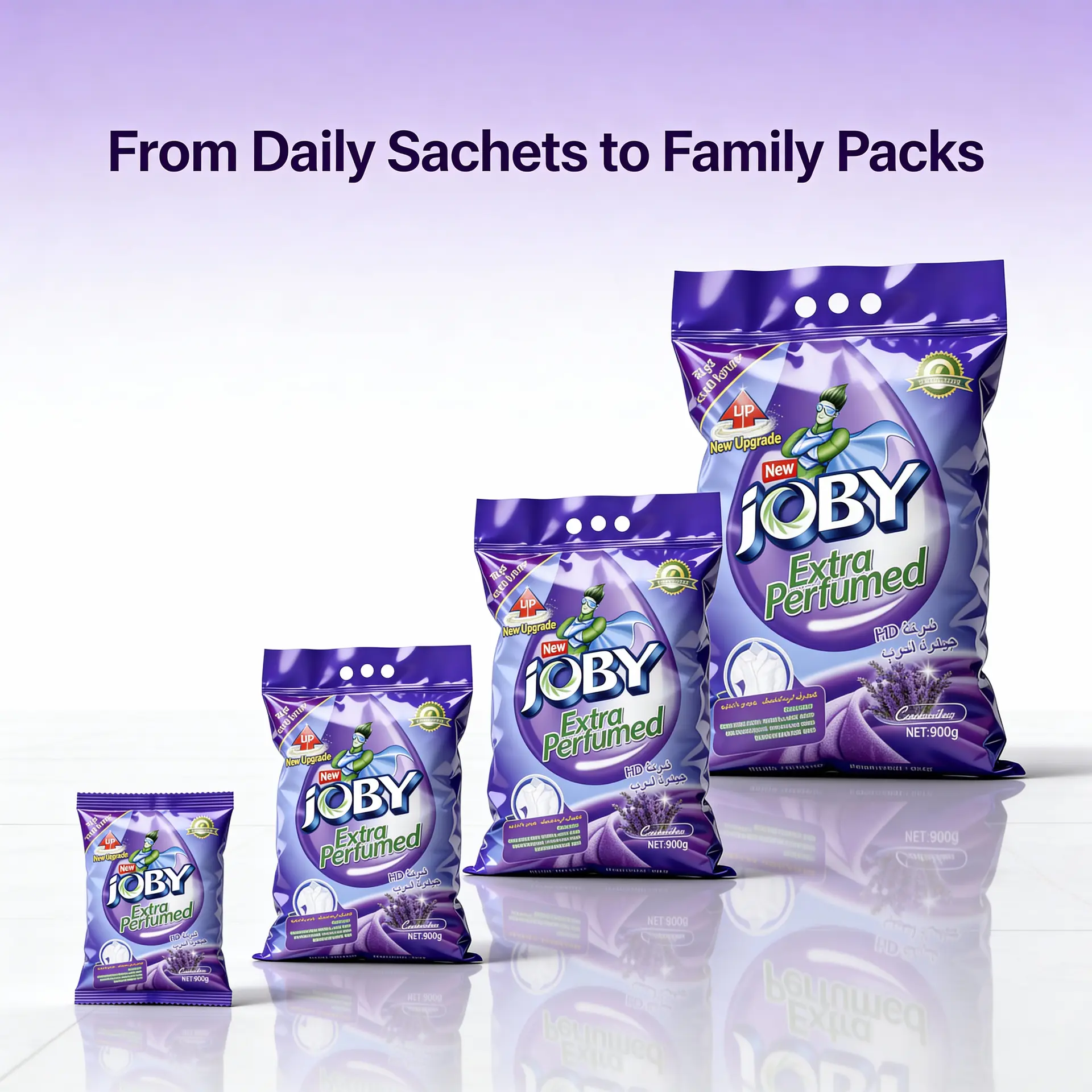 From small daily sachets to 5 kg family bags and bulk woven bags for laundries and institutions, JOBY covers multiple price points.
