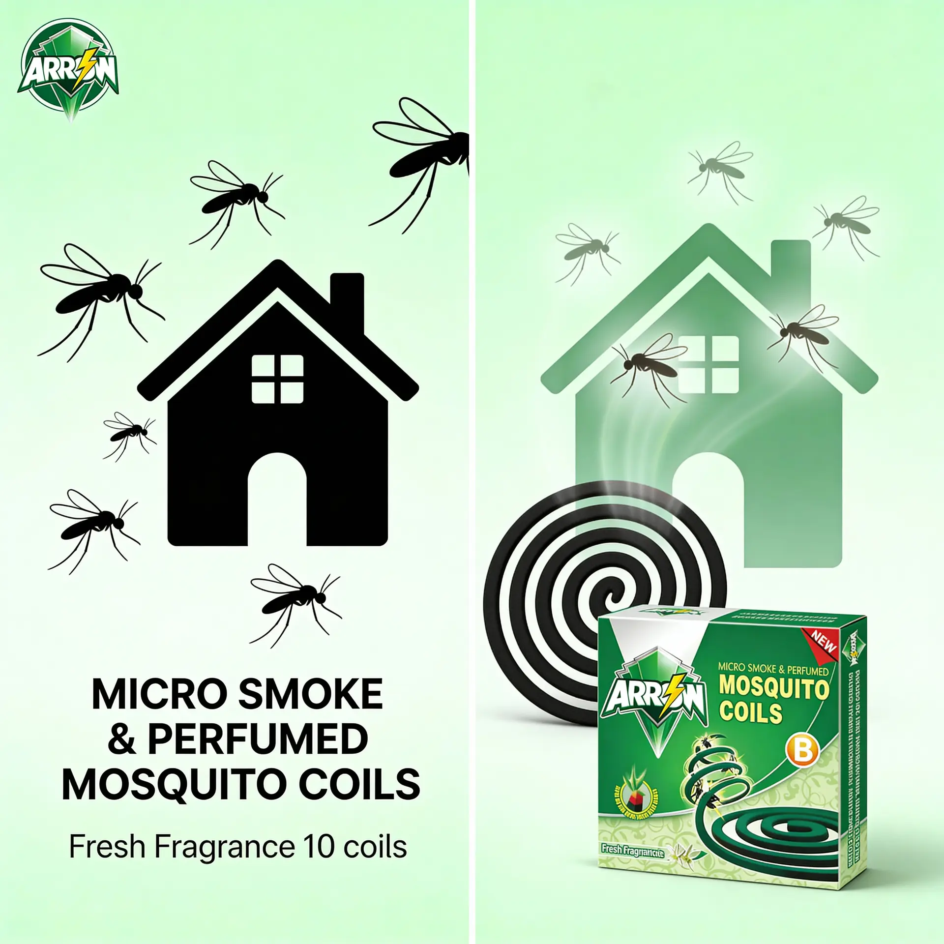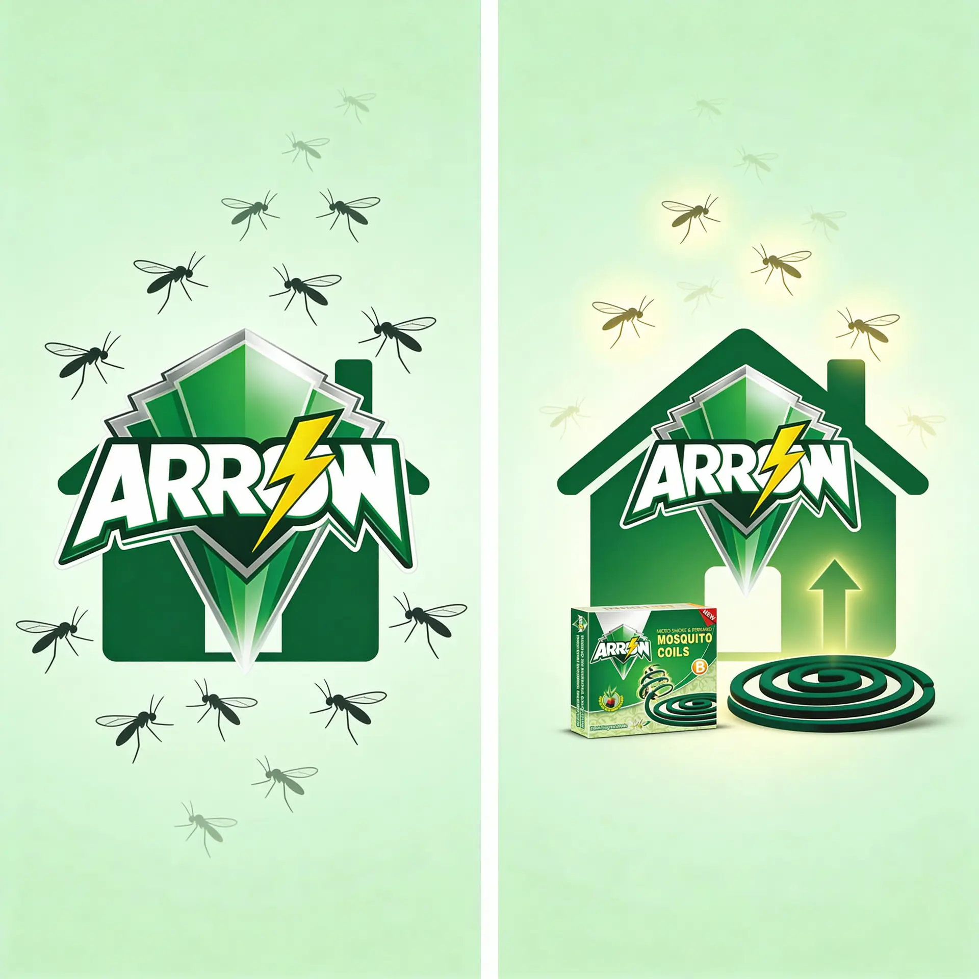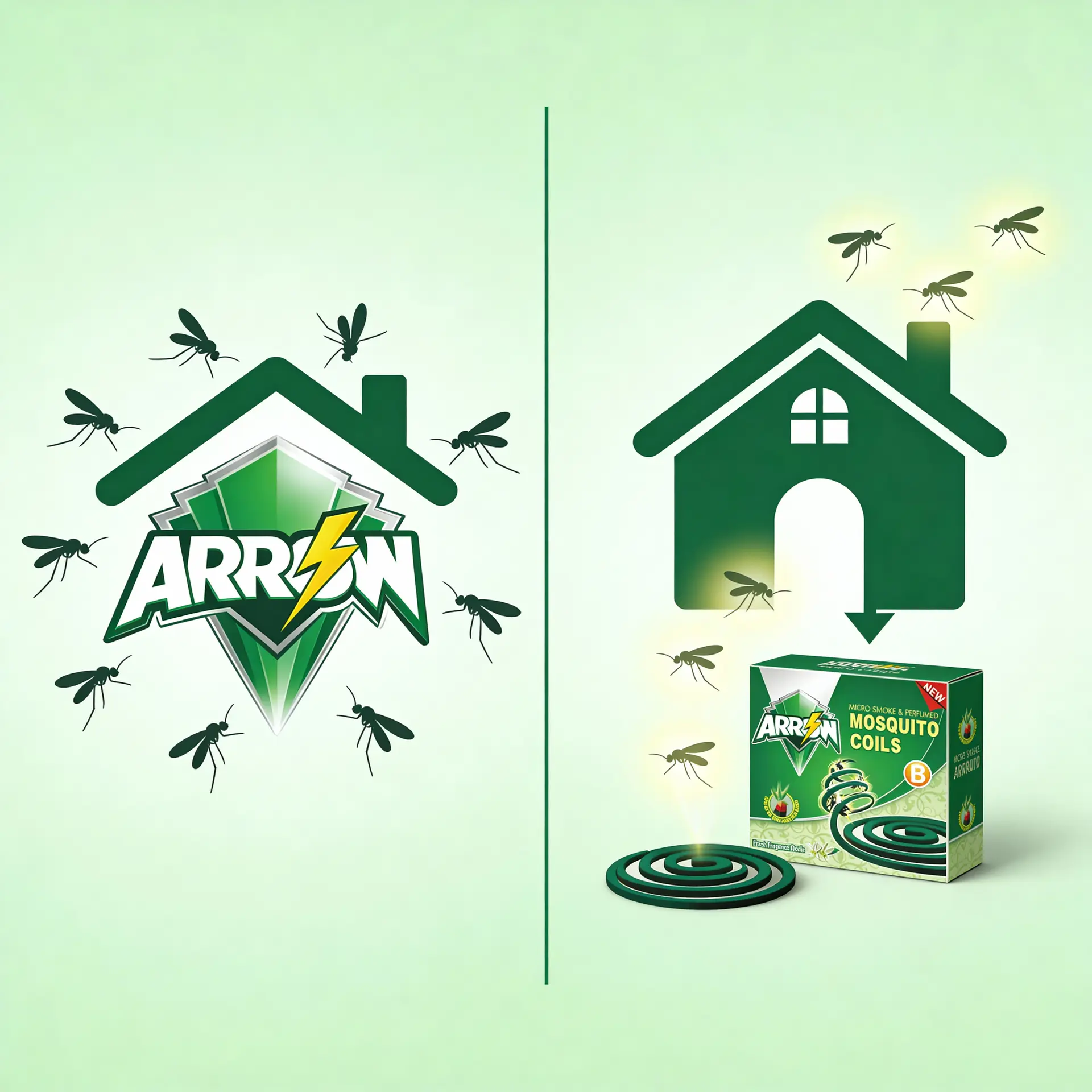 The green ARROW shield and lightning logo combined with the black coil visual create a powerful “mosquito control expert” image on the shelf. This helps you: