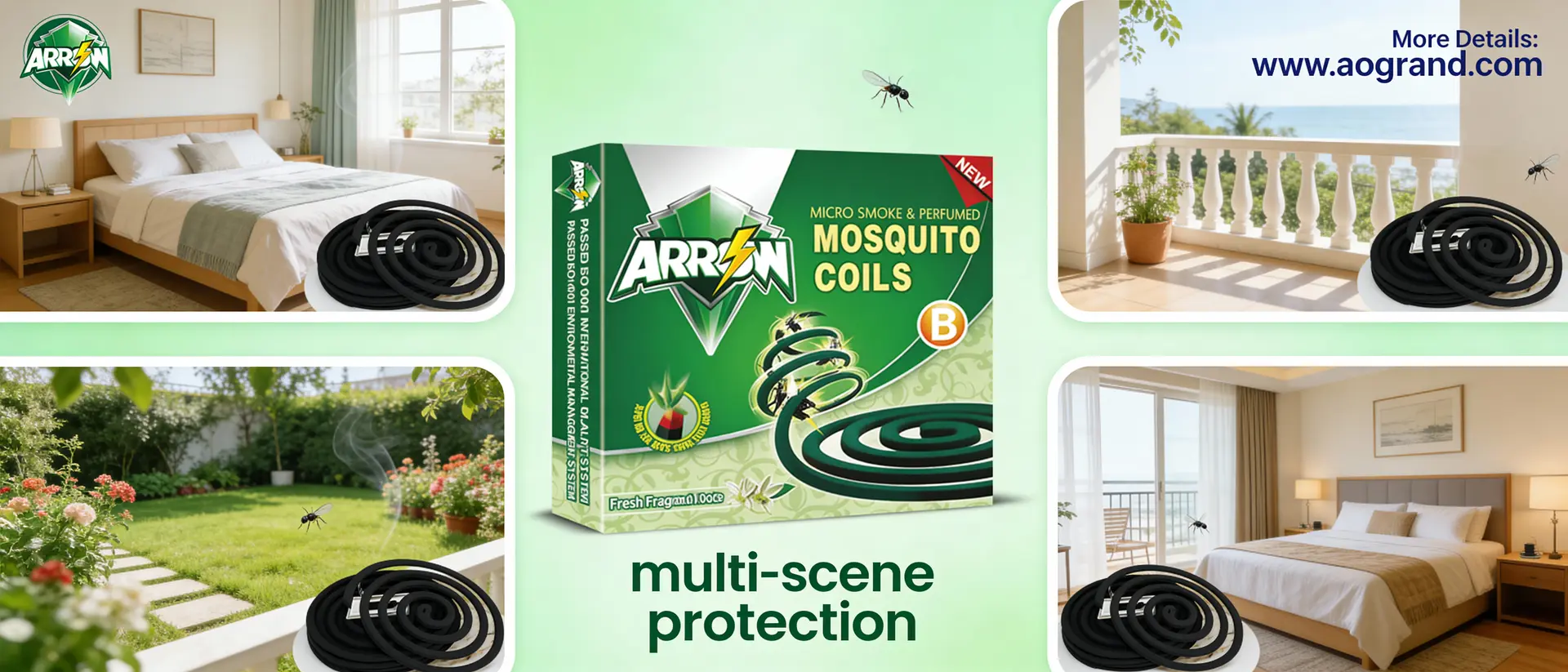 Produced in AoGrand’s professional mosquito-coil factory, ARROW black coils come with: