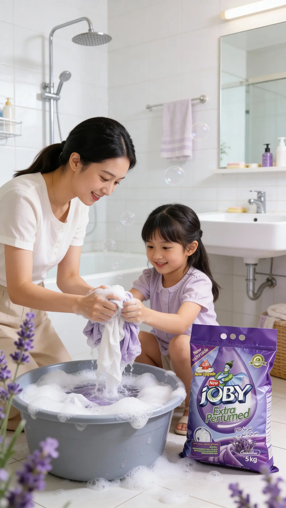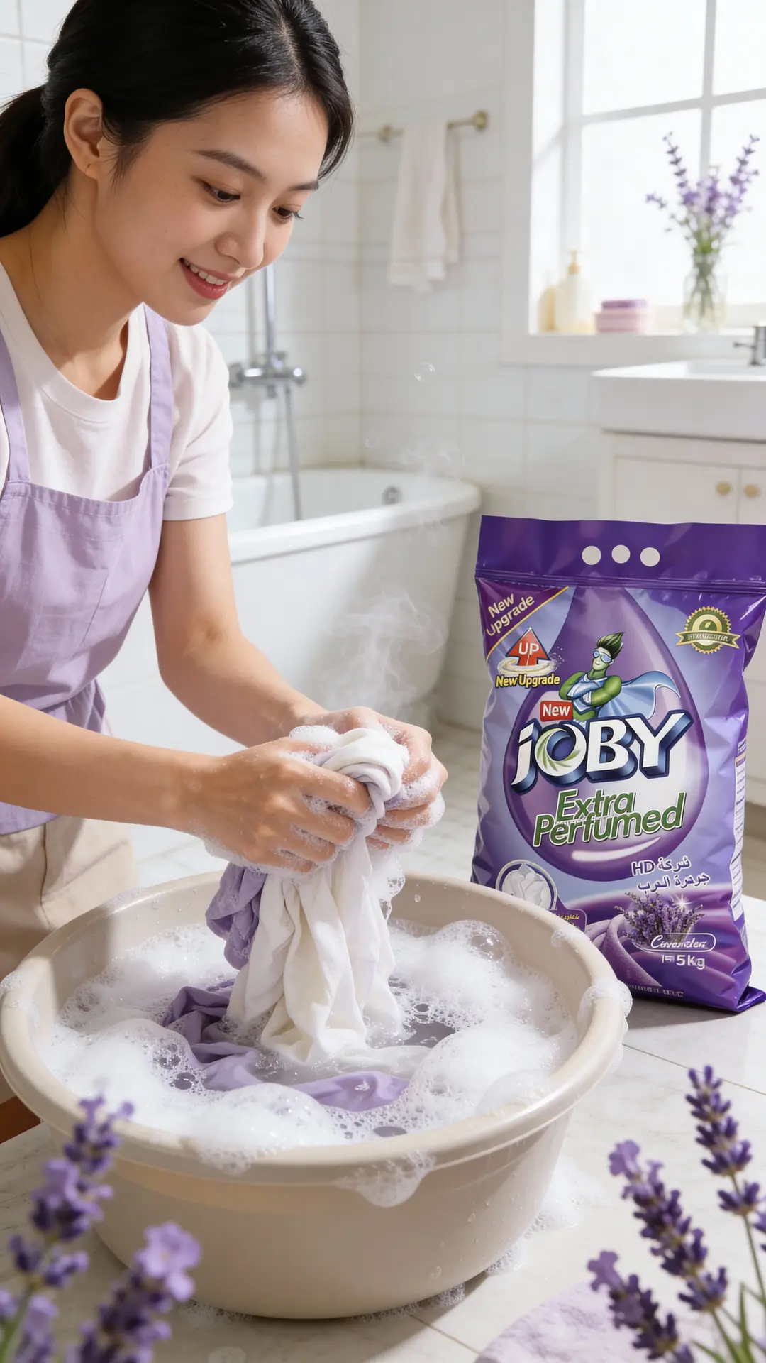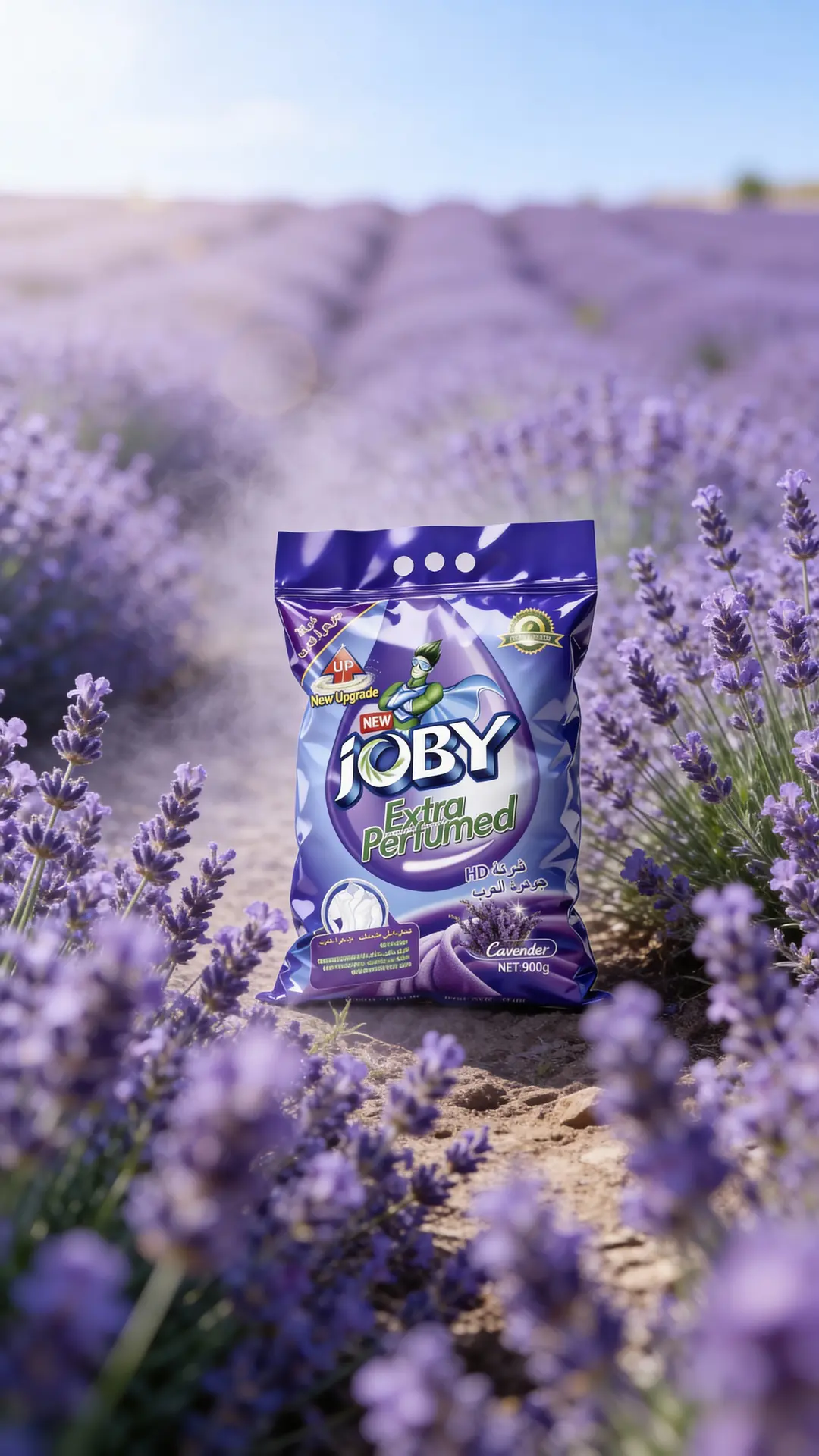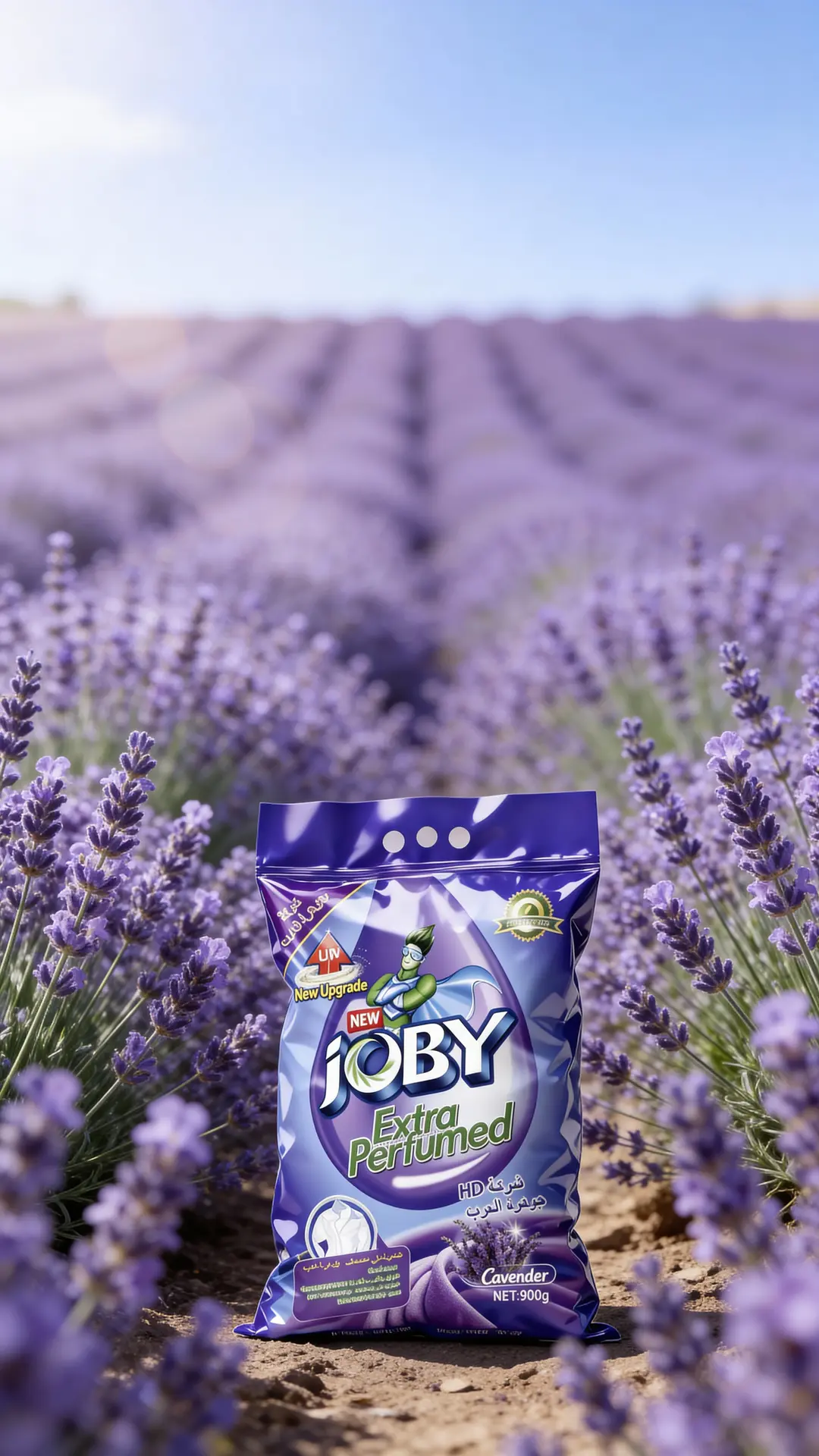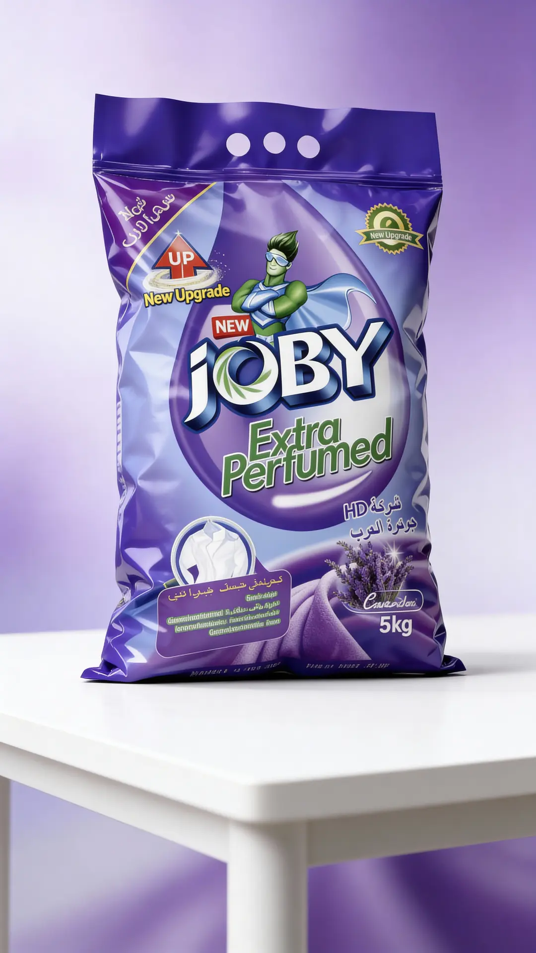 Meet JOBY Extra Perfumed Washing Powder – rich foam, long-lasting lavender fragrance and deep cleaning in every scoop.