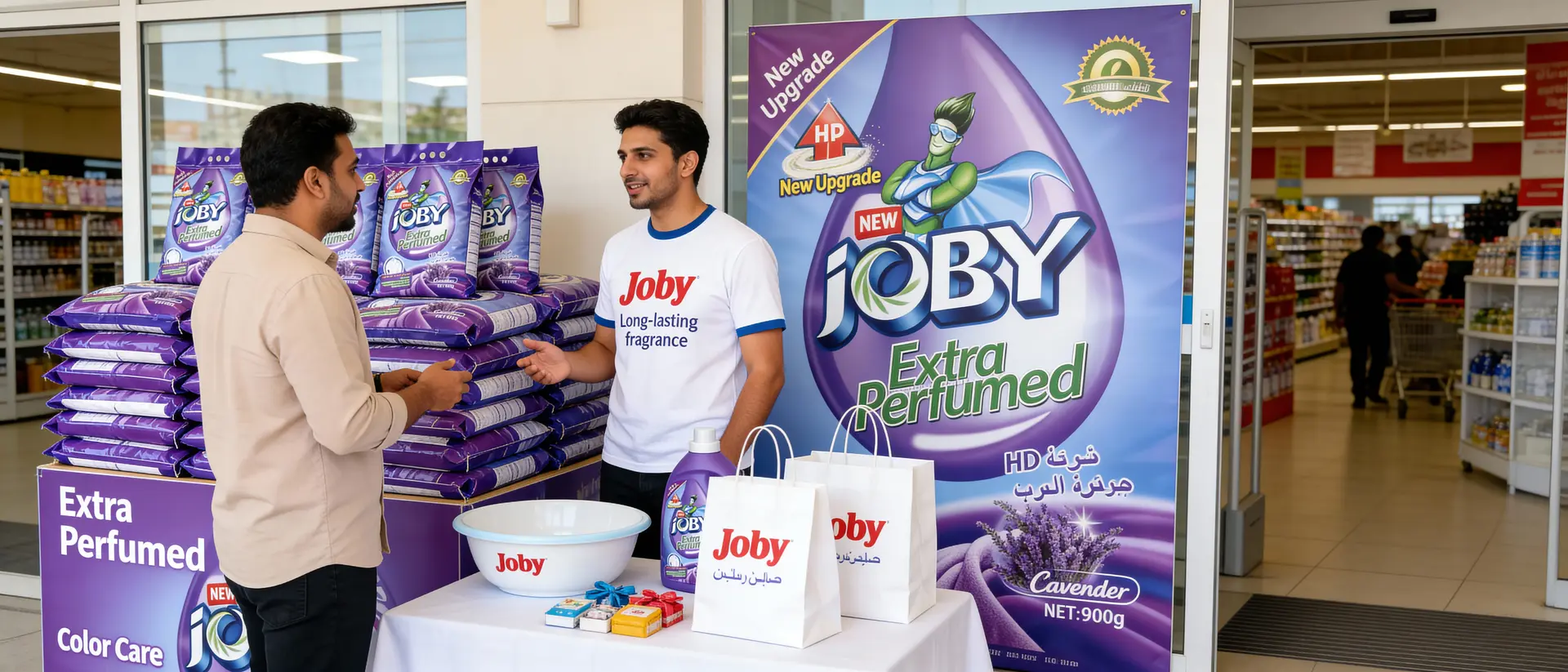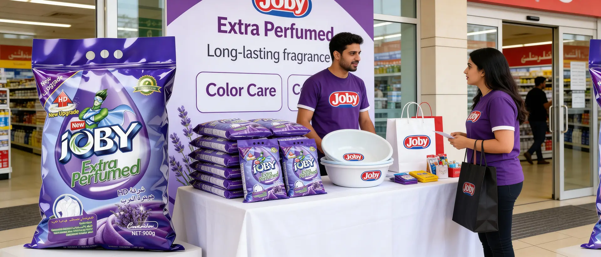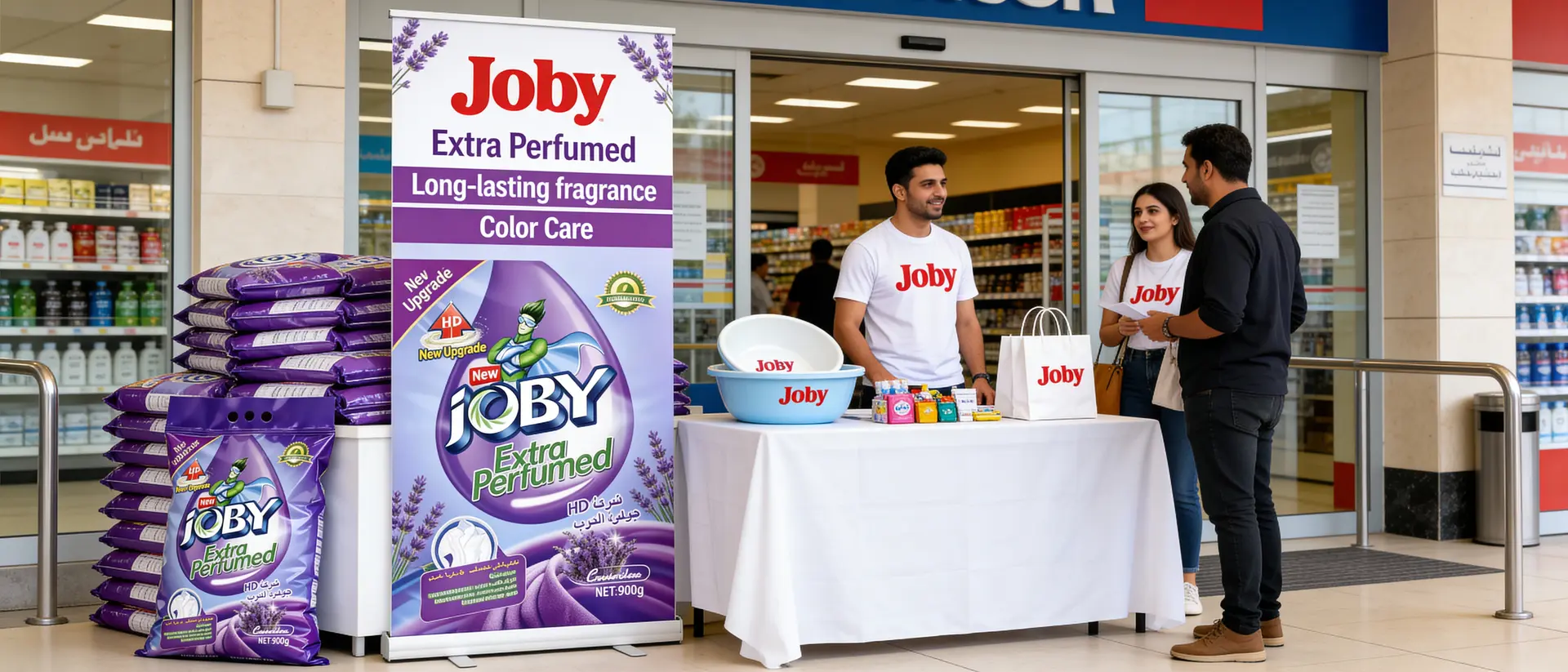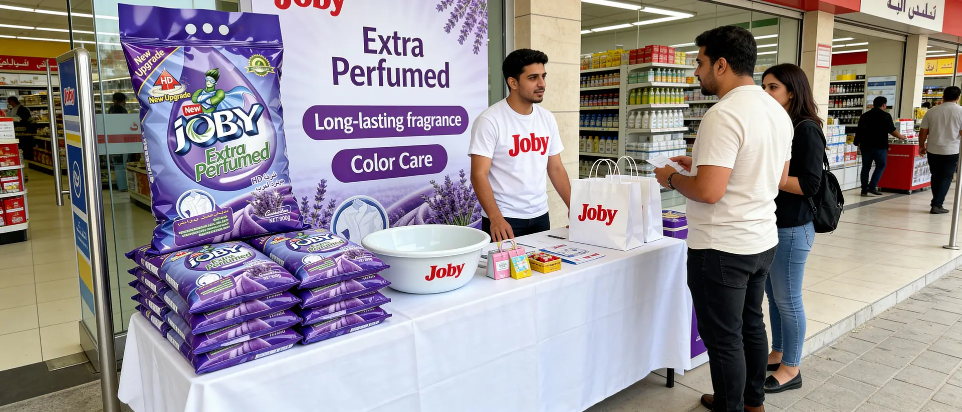 Try JOBY Extra Perfumed Washing Powder – rich foam, deep clean and fragrance that shoppers love.