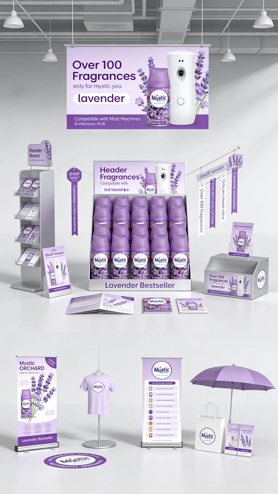 Use a shelf talker + wobbler to highlight “100+ fragrances” and compatibility
