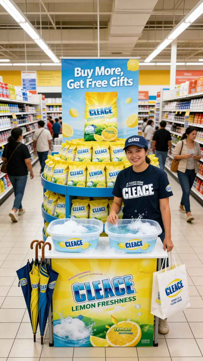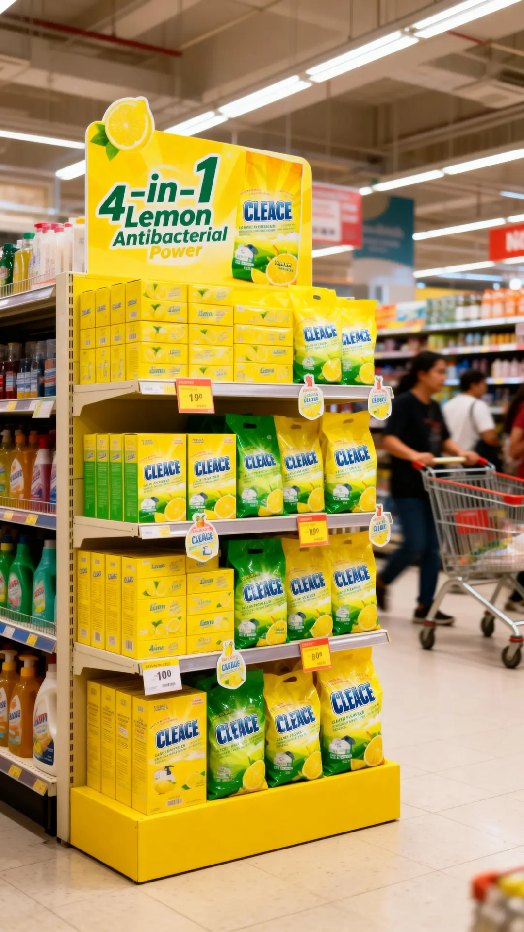Strong visibility, strong rotation: CLEACE lemon perfumed washing powder is ready for your market.
