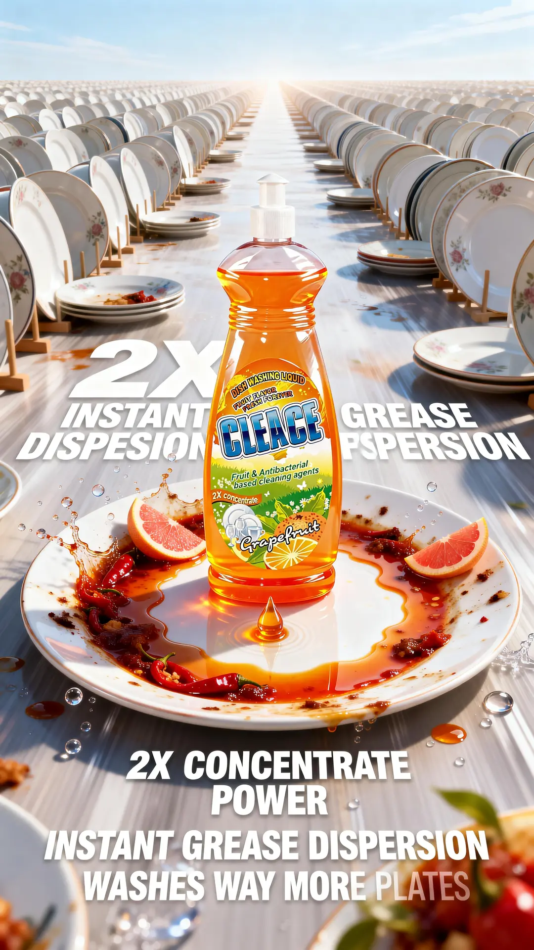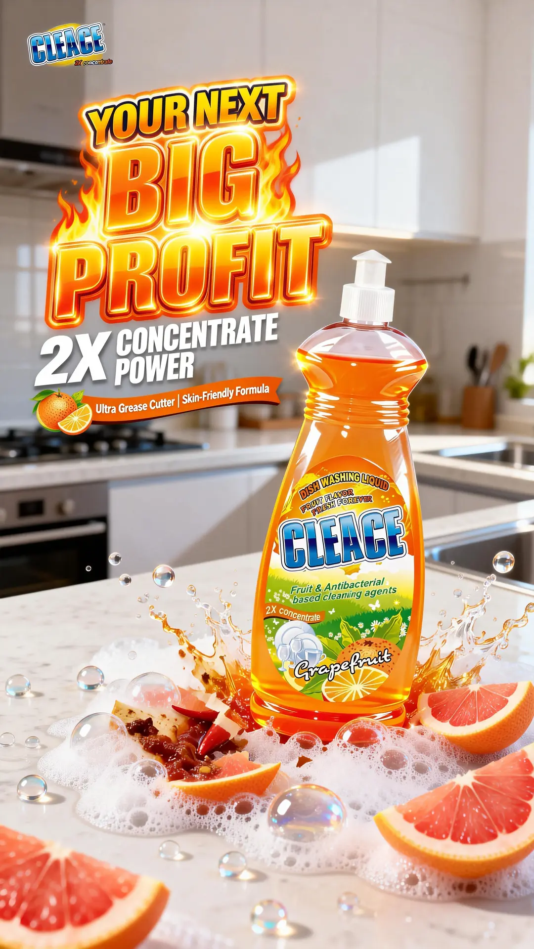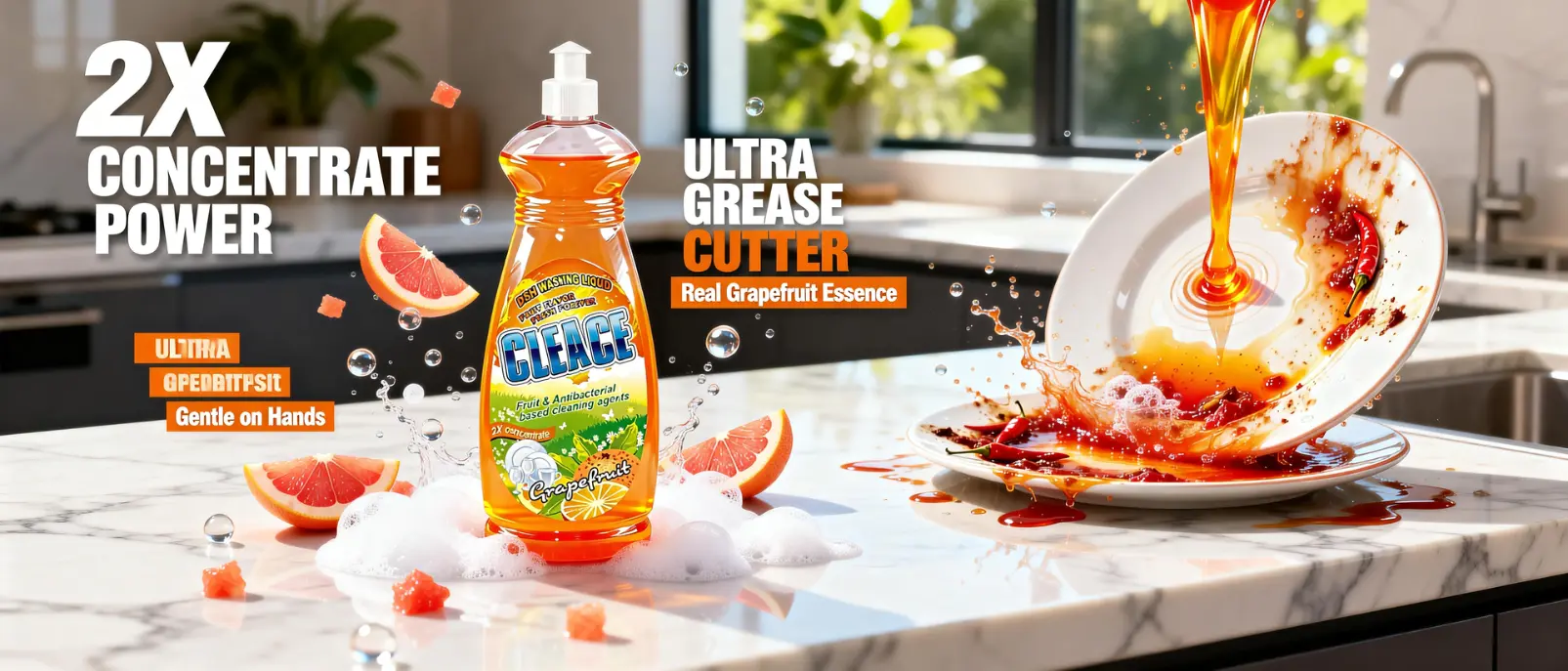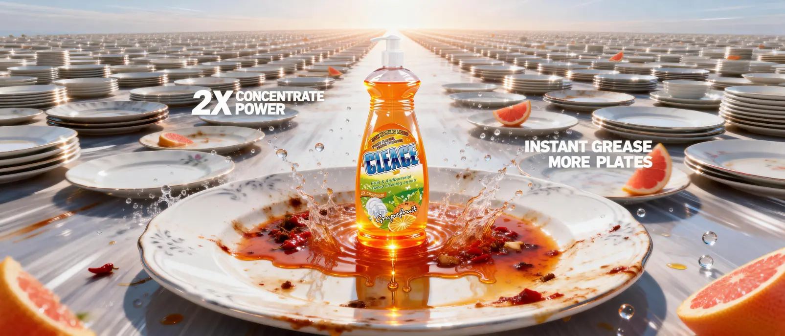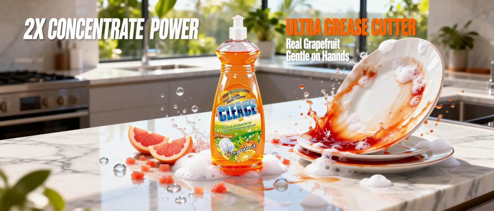 • Try CLEACE 2X Ultra-Concentrated Dishwashing Liquid – rich foam, instant degreasing, and a fresh grapefruit fragrance that shoppers love.