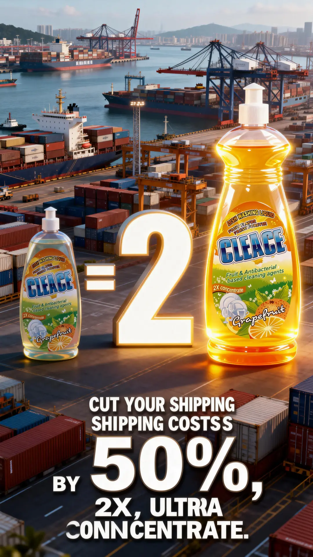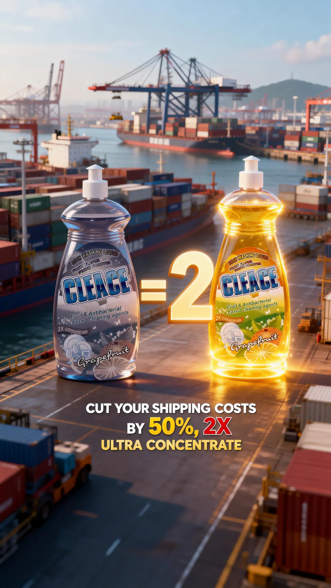 • Another container of CLEACE 2X Ultra-Concentrated Dishwashing Liquid on the way to [destination country]! 🚢
