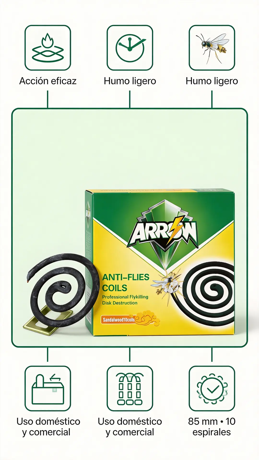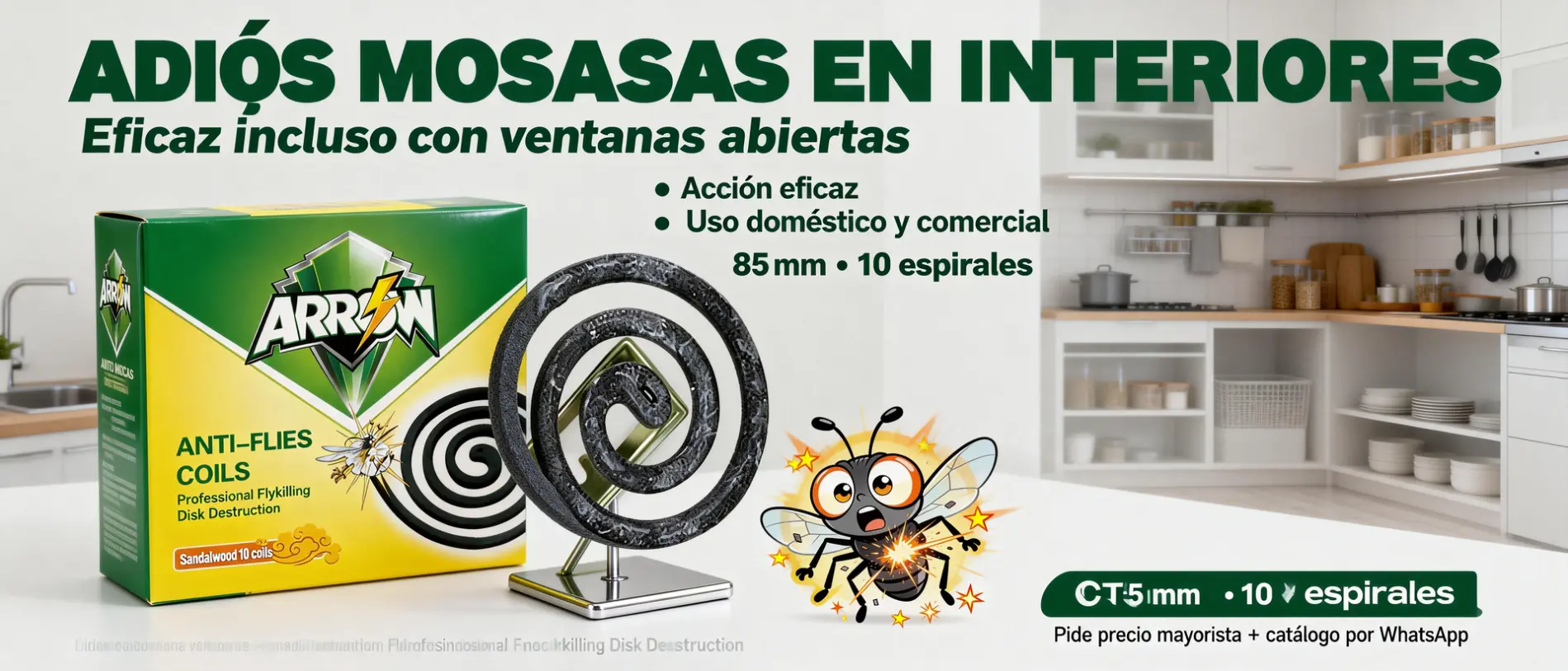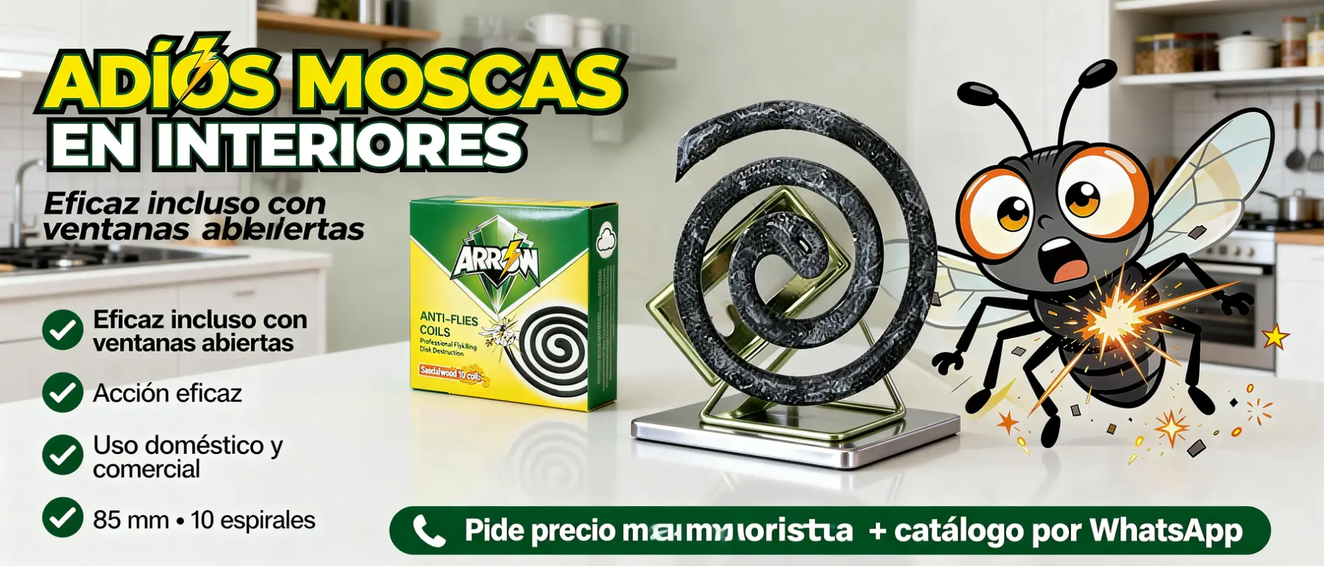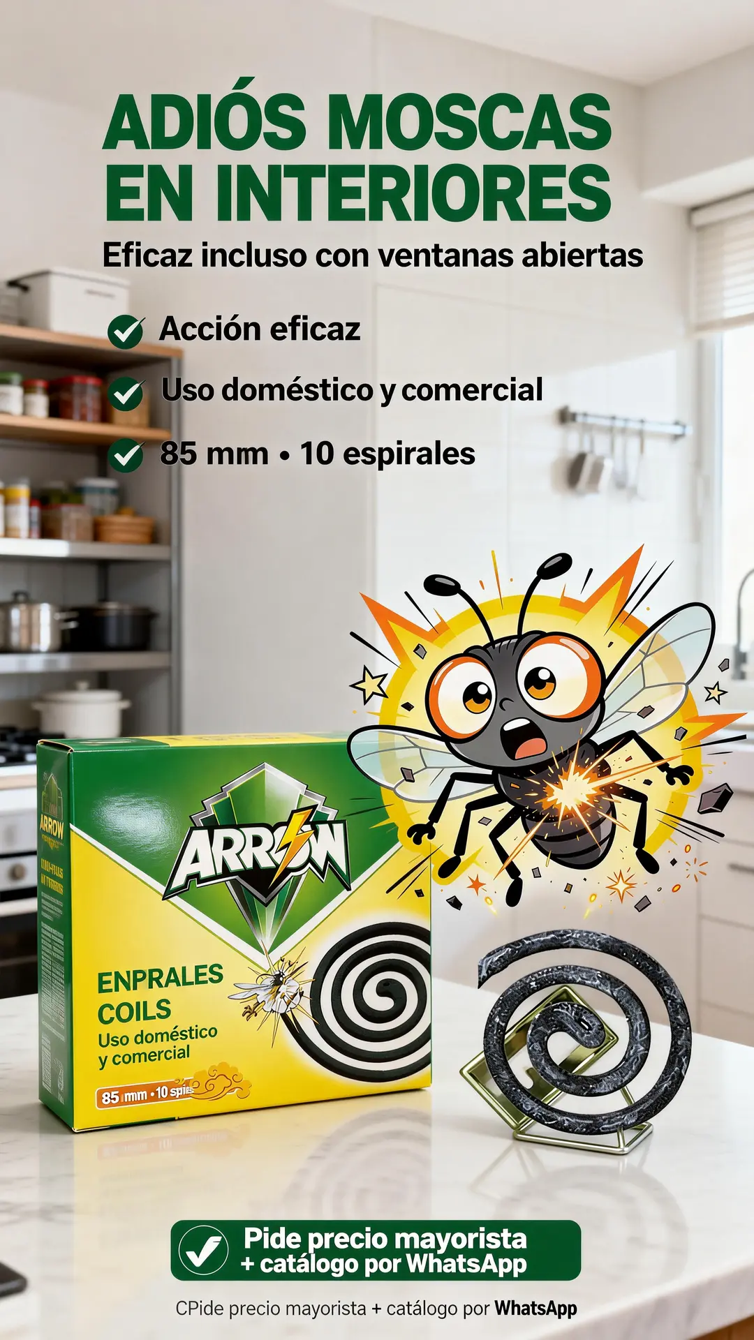 ¿Moscas en interiores? Prueba ARROW Anti-Moscas — acción rápida y humo ligero. Escríbenos para precio mayorista y catálogo.