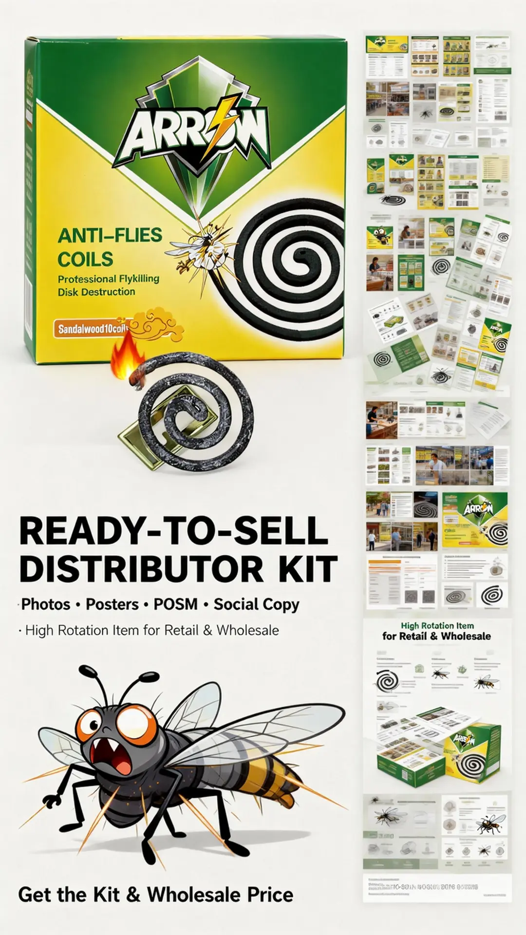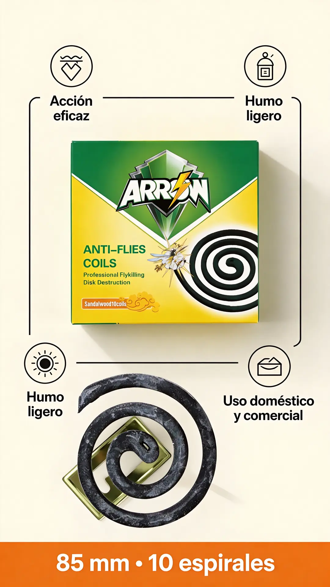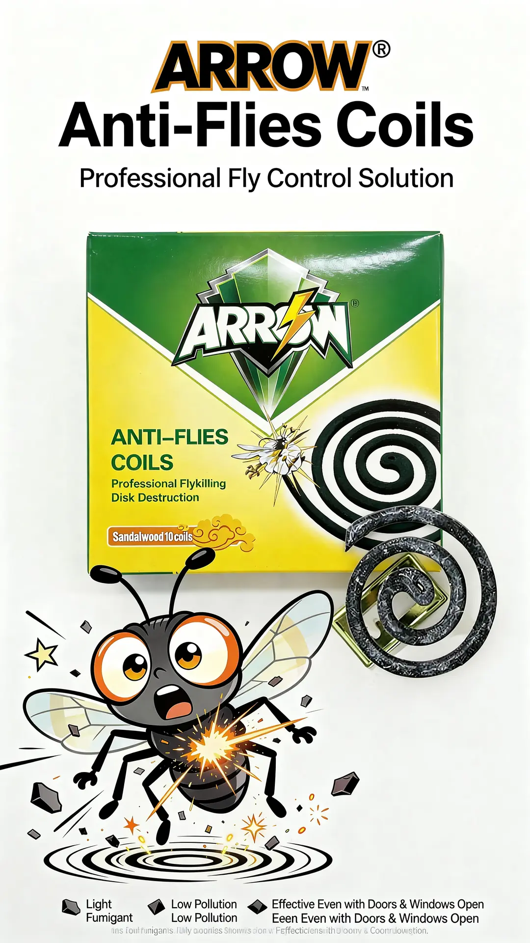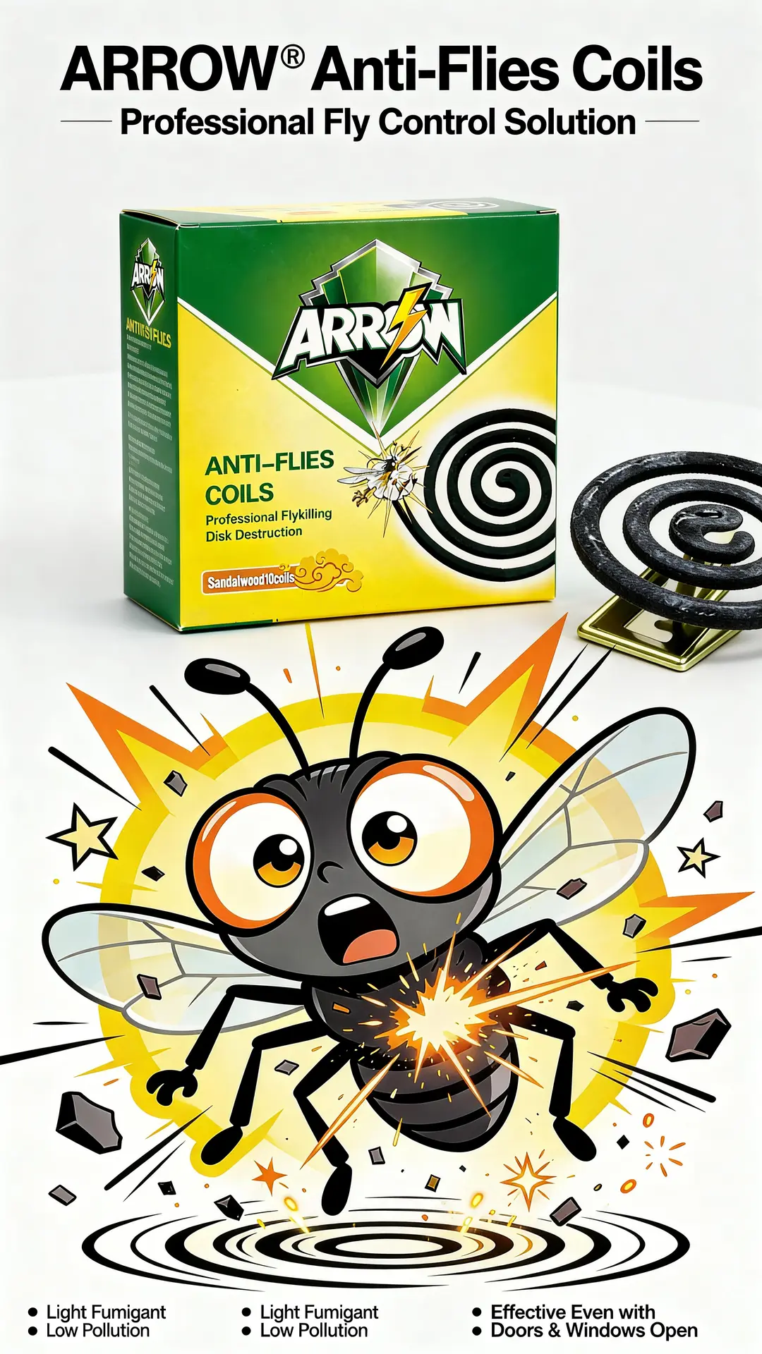 ¿Moscas en interiores? Prueba ARROW Anti-Moscas — acción rápida y humo ligero. Escríbenos para precio mayorista y catálogo.