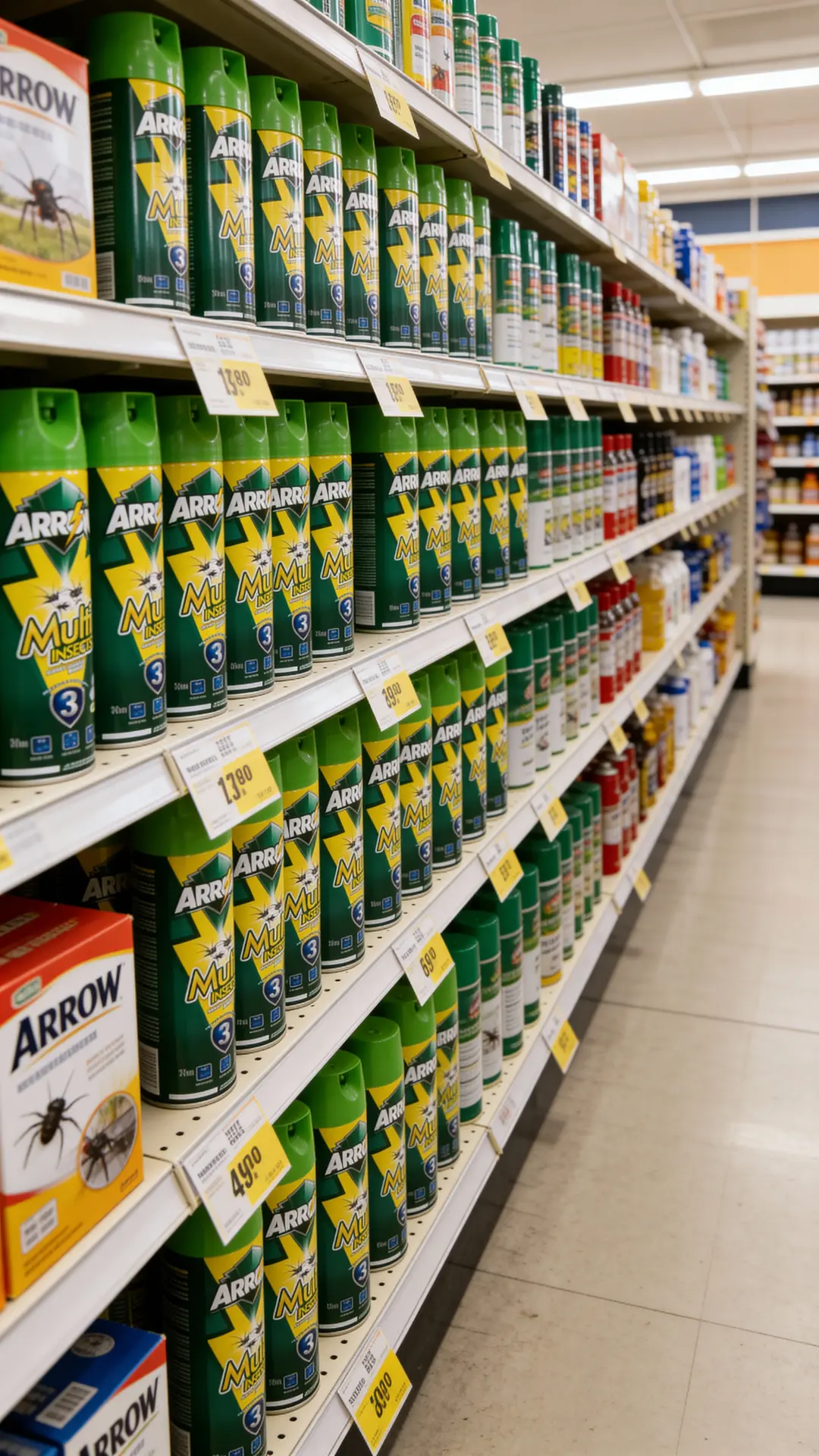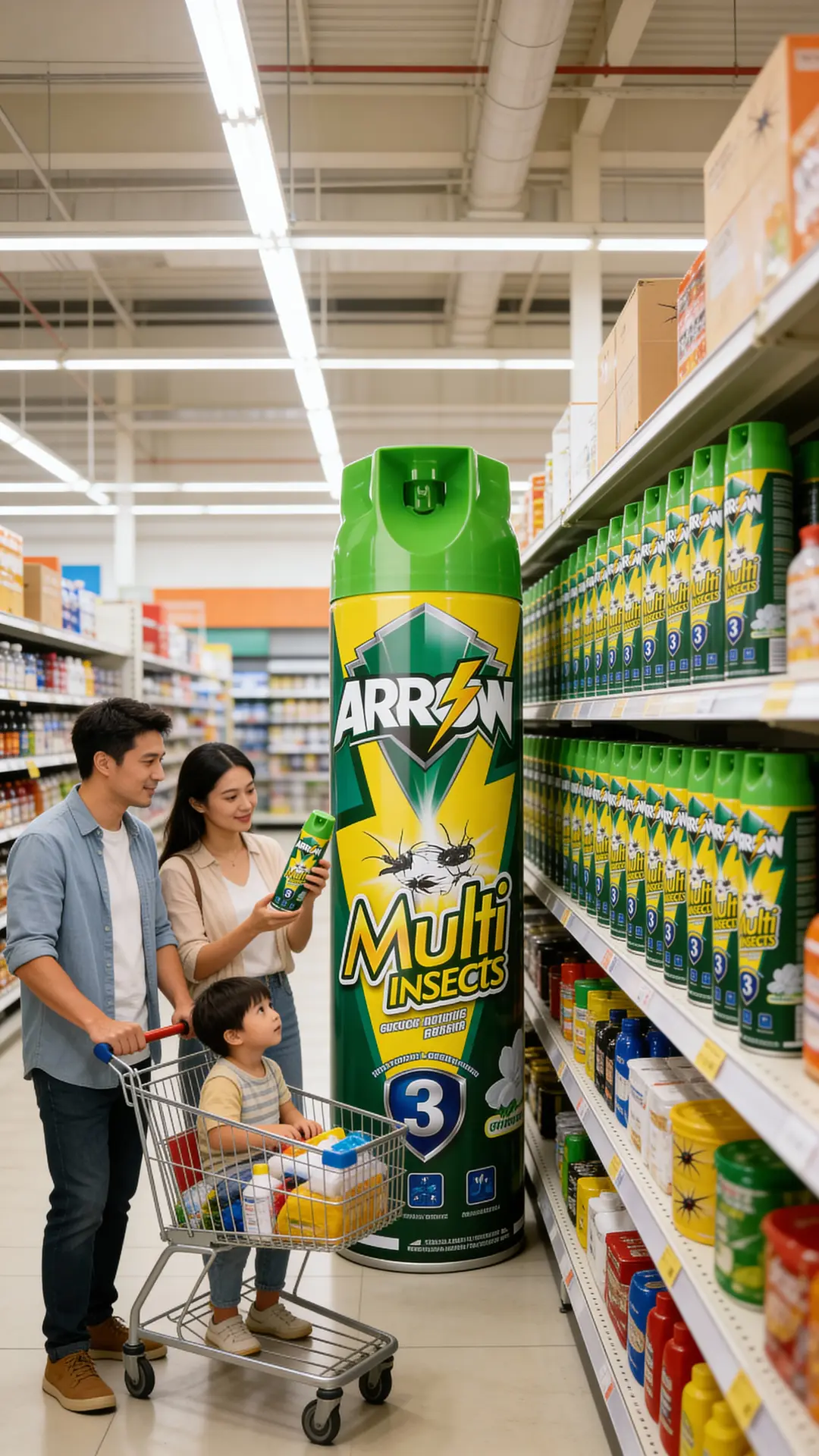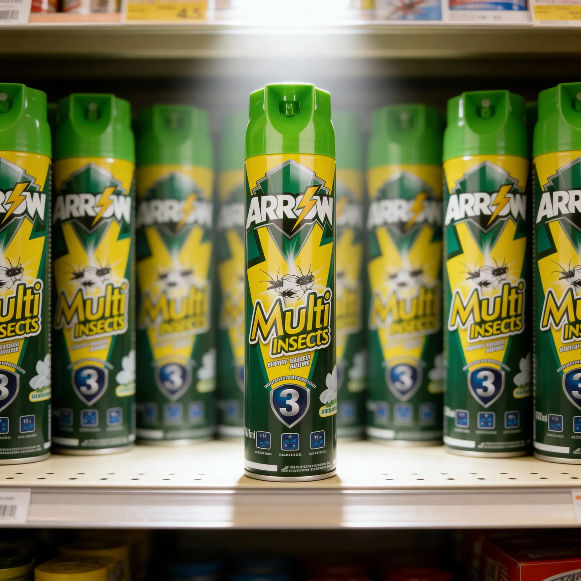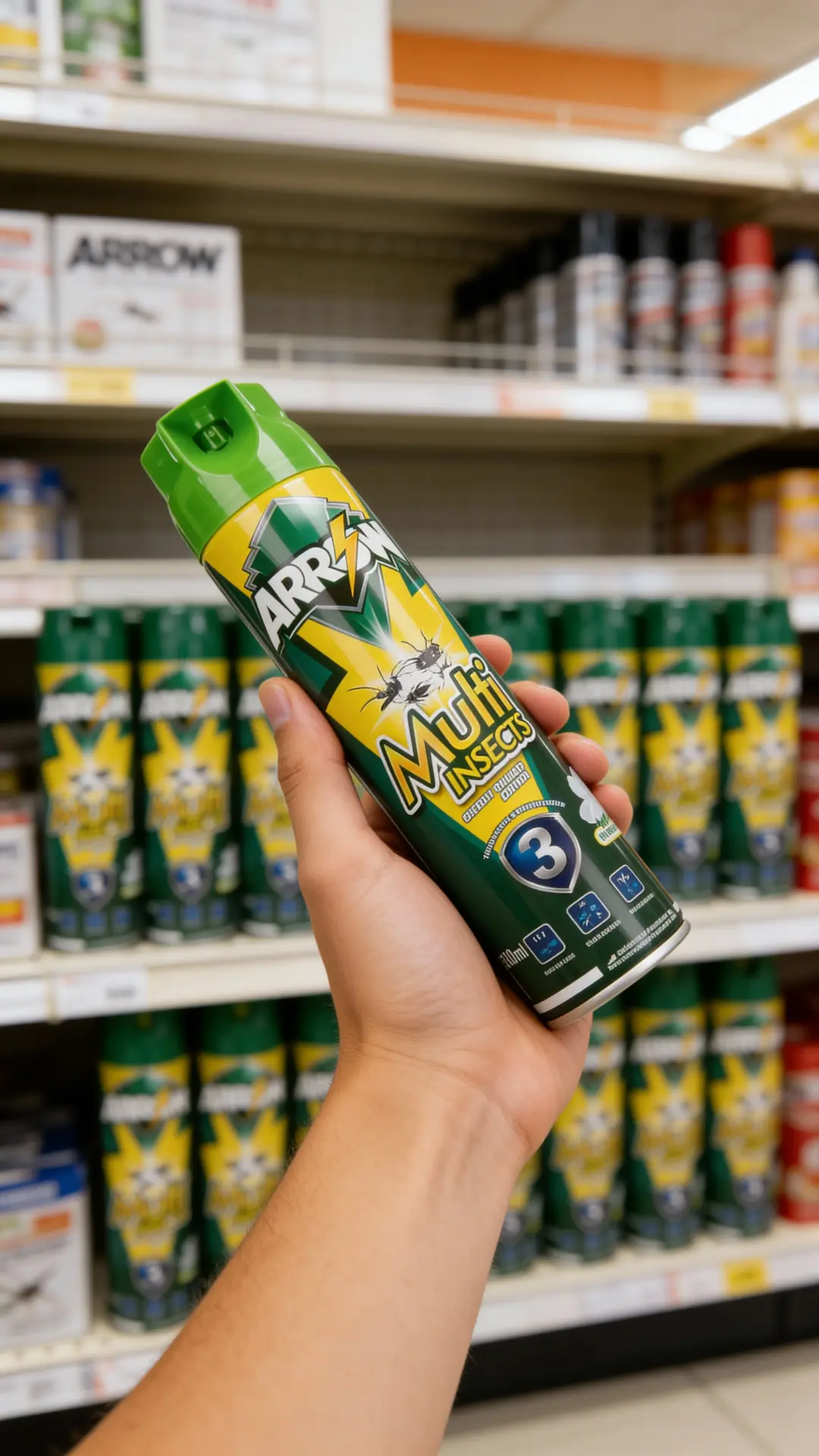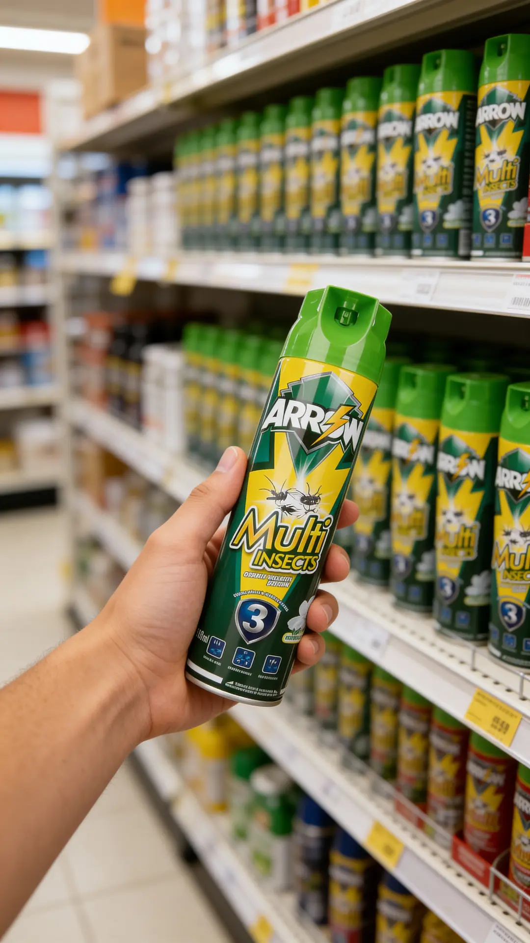 Positioned as a value-for-money branded spray, ARROW Multi Insects sits above unbranded low-quality aerosols but remains competitive with mainstream local brands in mass retail channels.