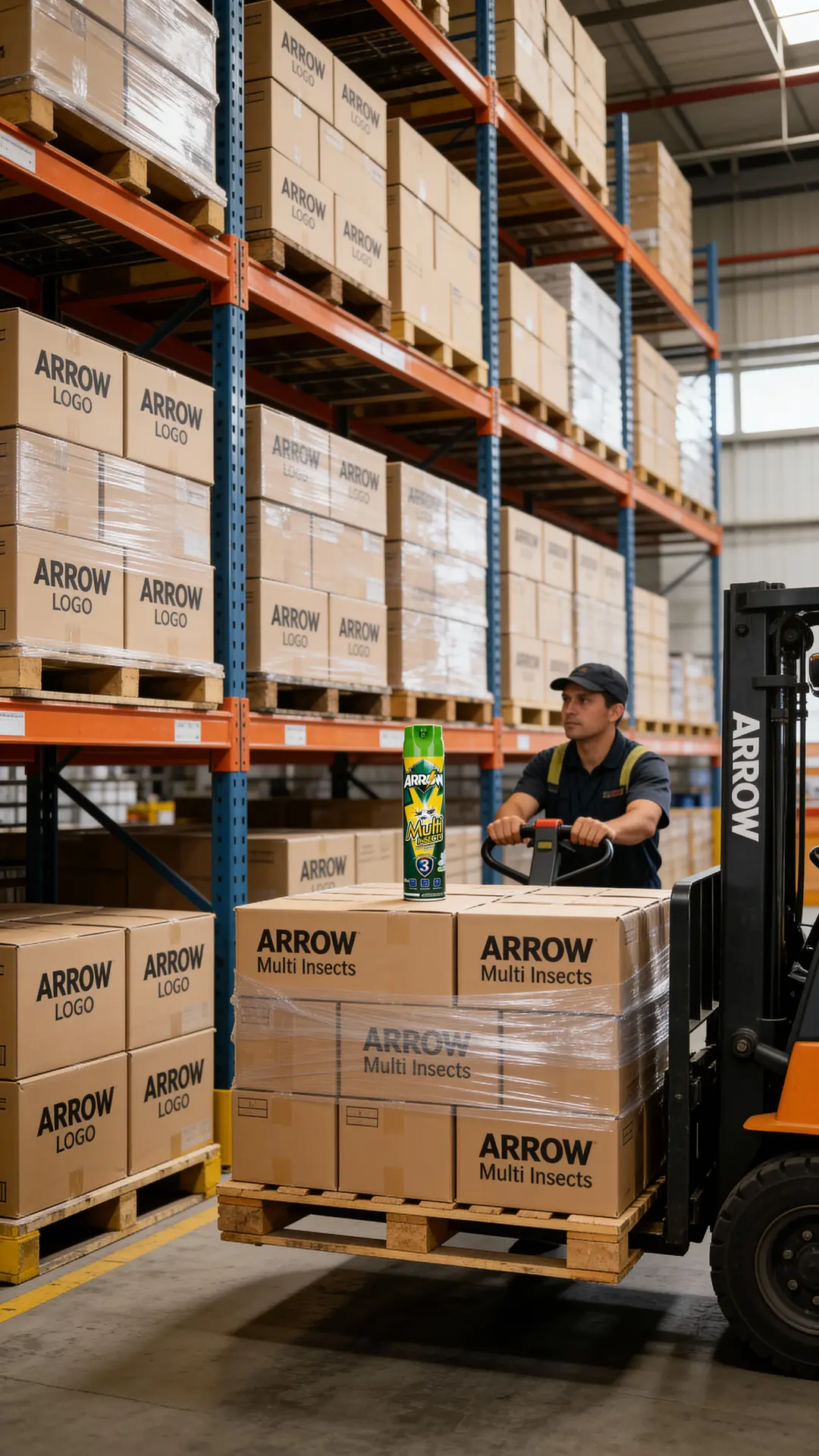 With its bright orange–yellow design and strong ARROW shield logo, it creates an instant brand block in the insecticide aisle and is easy for consumers to remember.