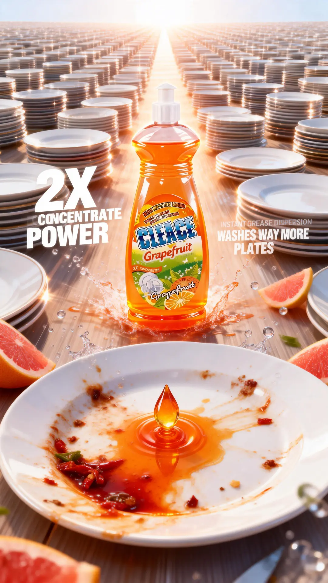 - Try CLEACE 2X Ultra-Concentrated Dishwashing Liquid – rich foam, instant degreasing, and a fresh grapefruit fragrance that shoppers love.