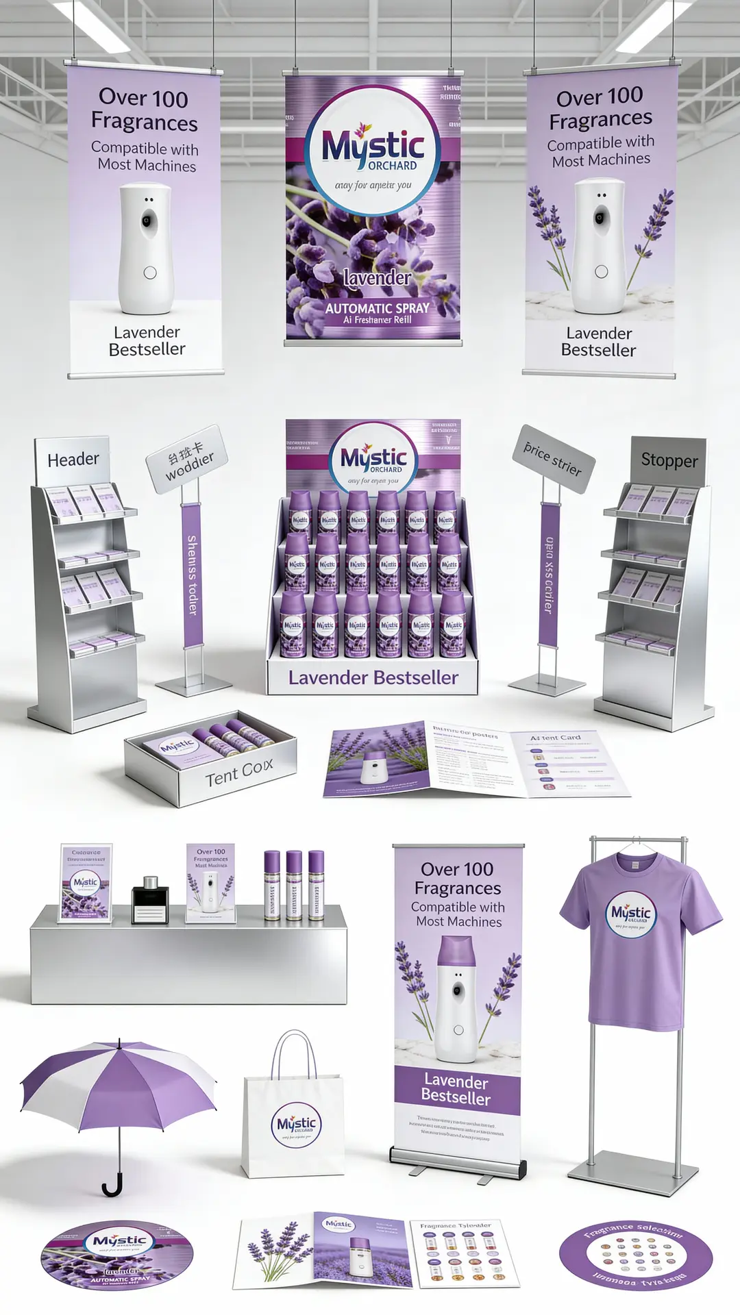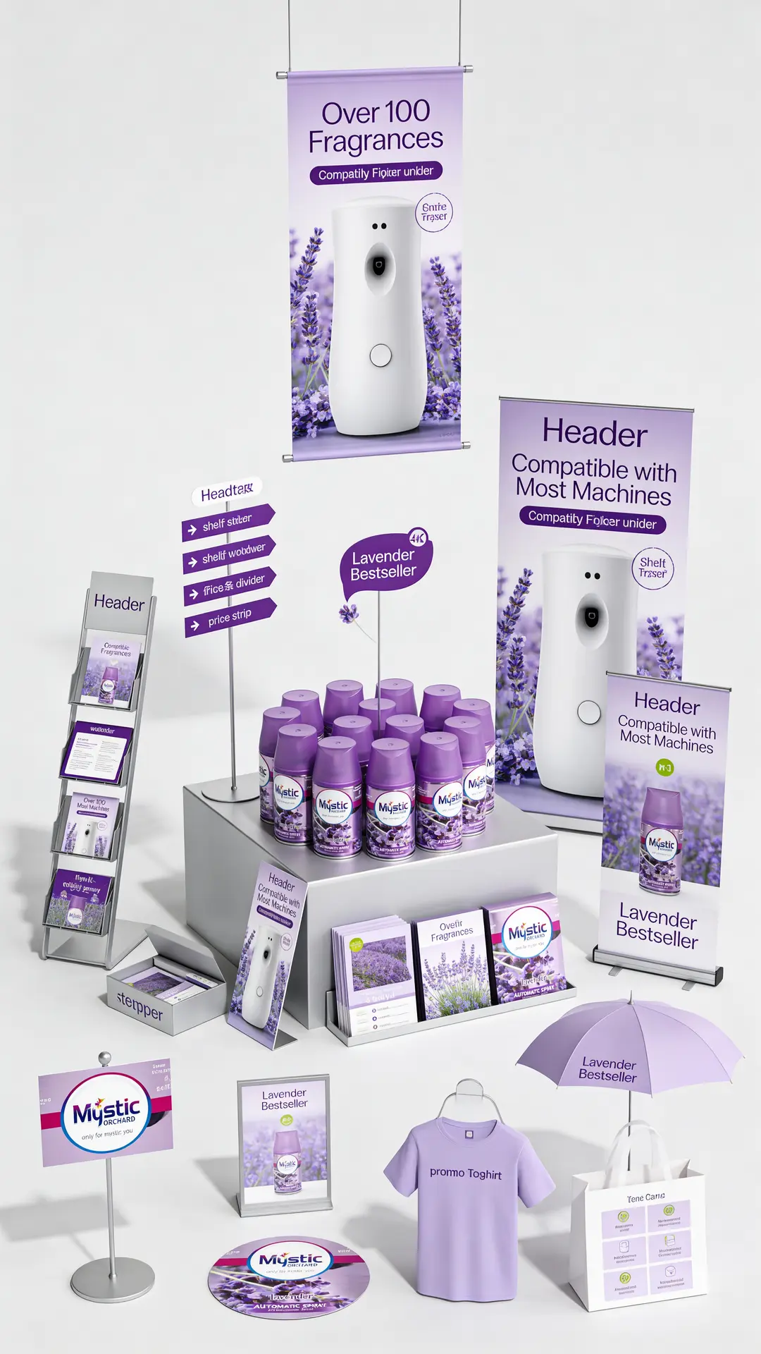 Use a shelf talker + wobbler to highlight “100+ fragrances” and compatibility