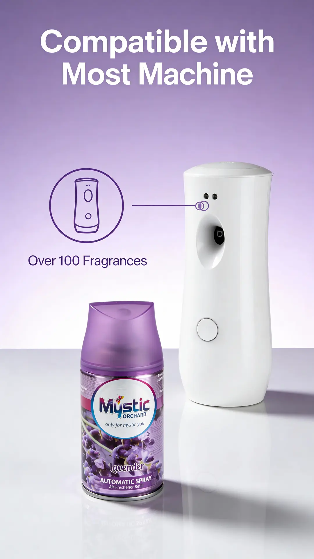Our 250ml Automatic Spray Air Freshener Refill (Metered Dose) is designed to be compatible with most mainstream automatic spray machines, so retailers and end-users can adopt quickly without changing devices.