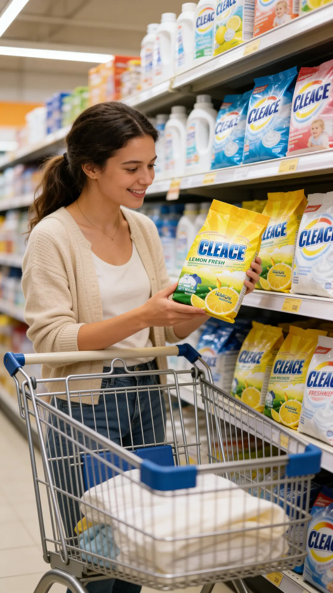 CLEACE on shelf – bright, bold and ready to drive sales in your laundry aisle.