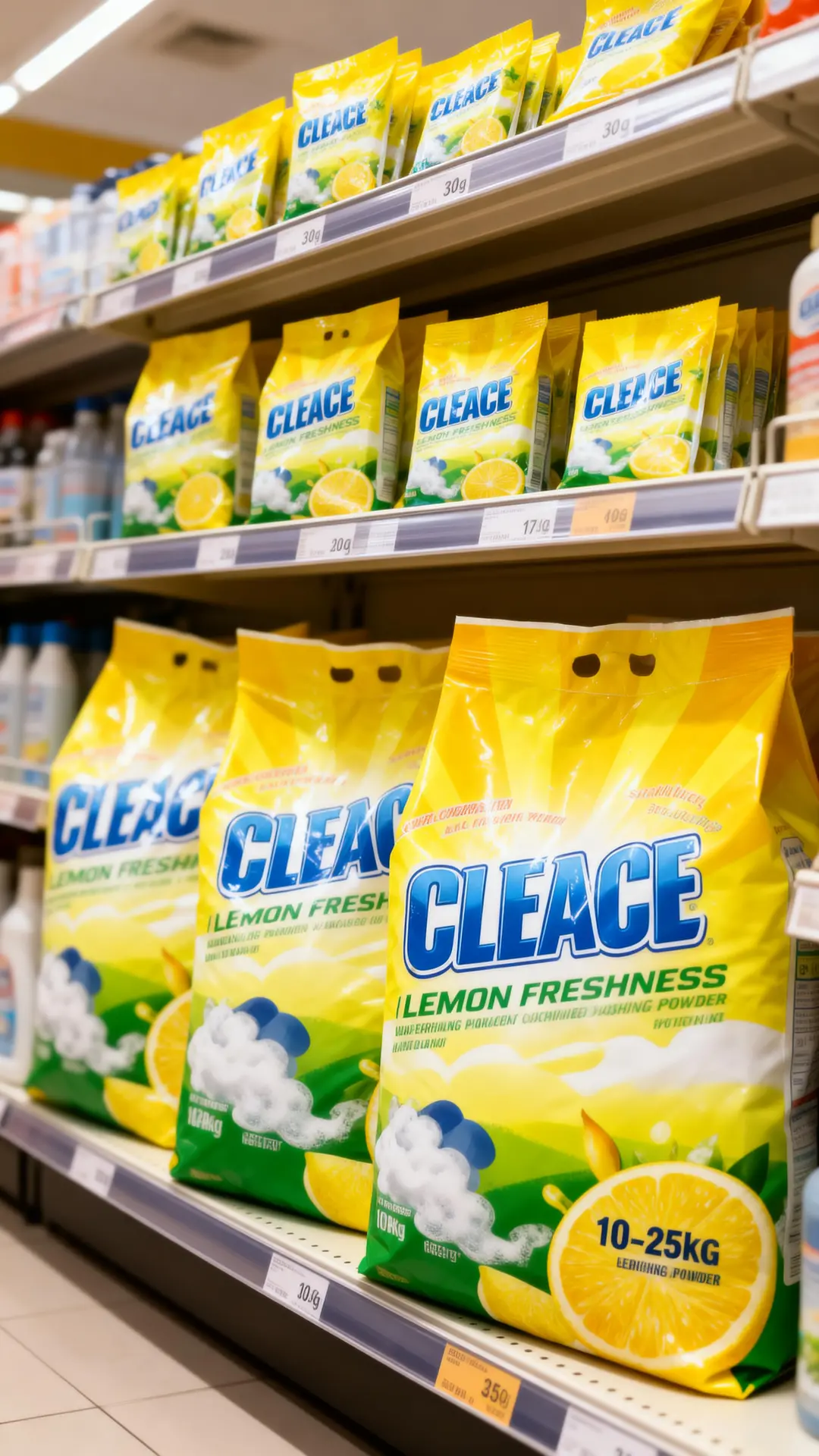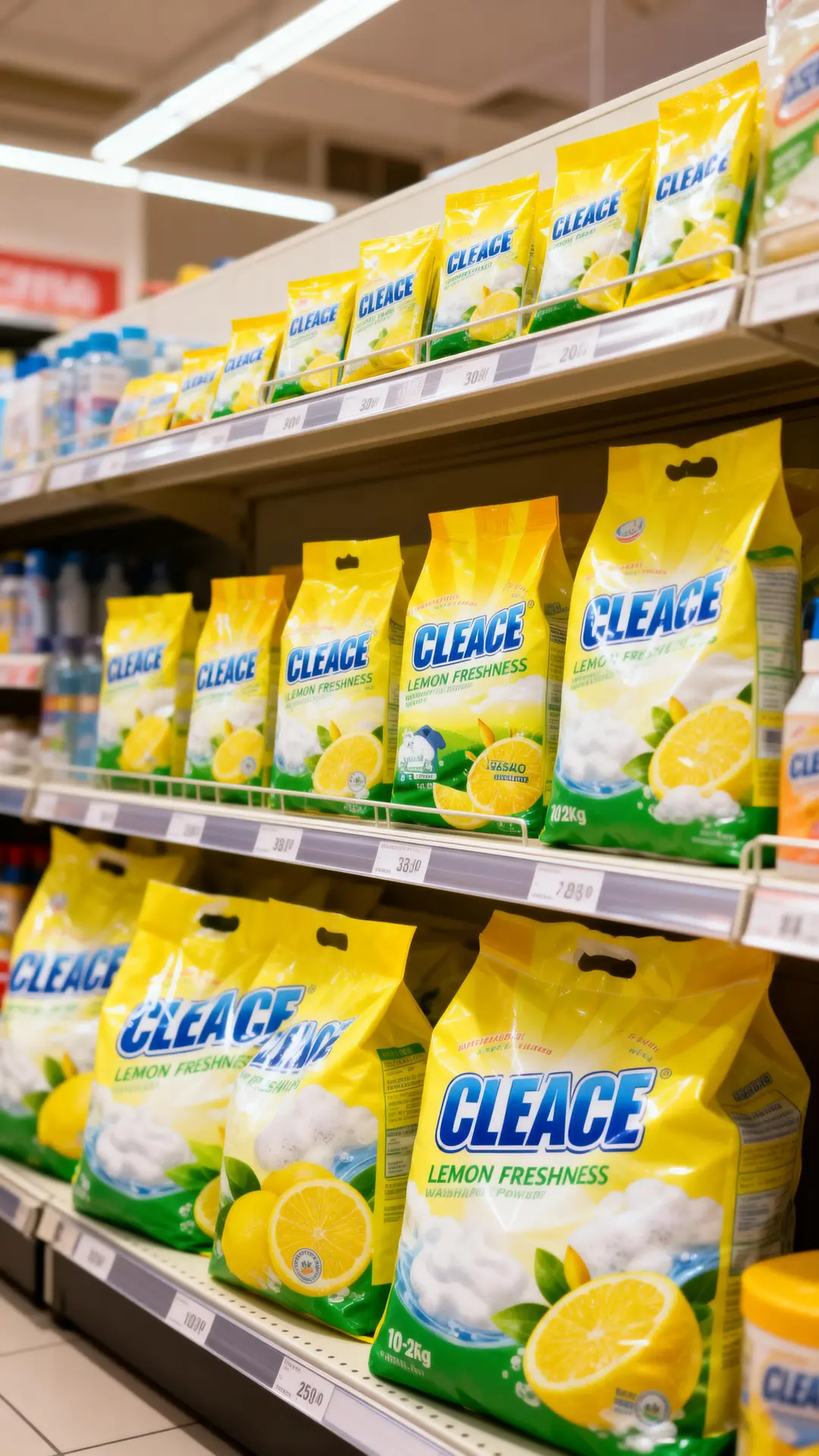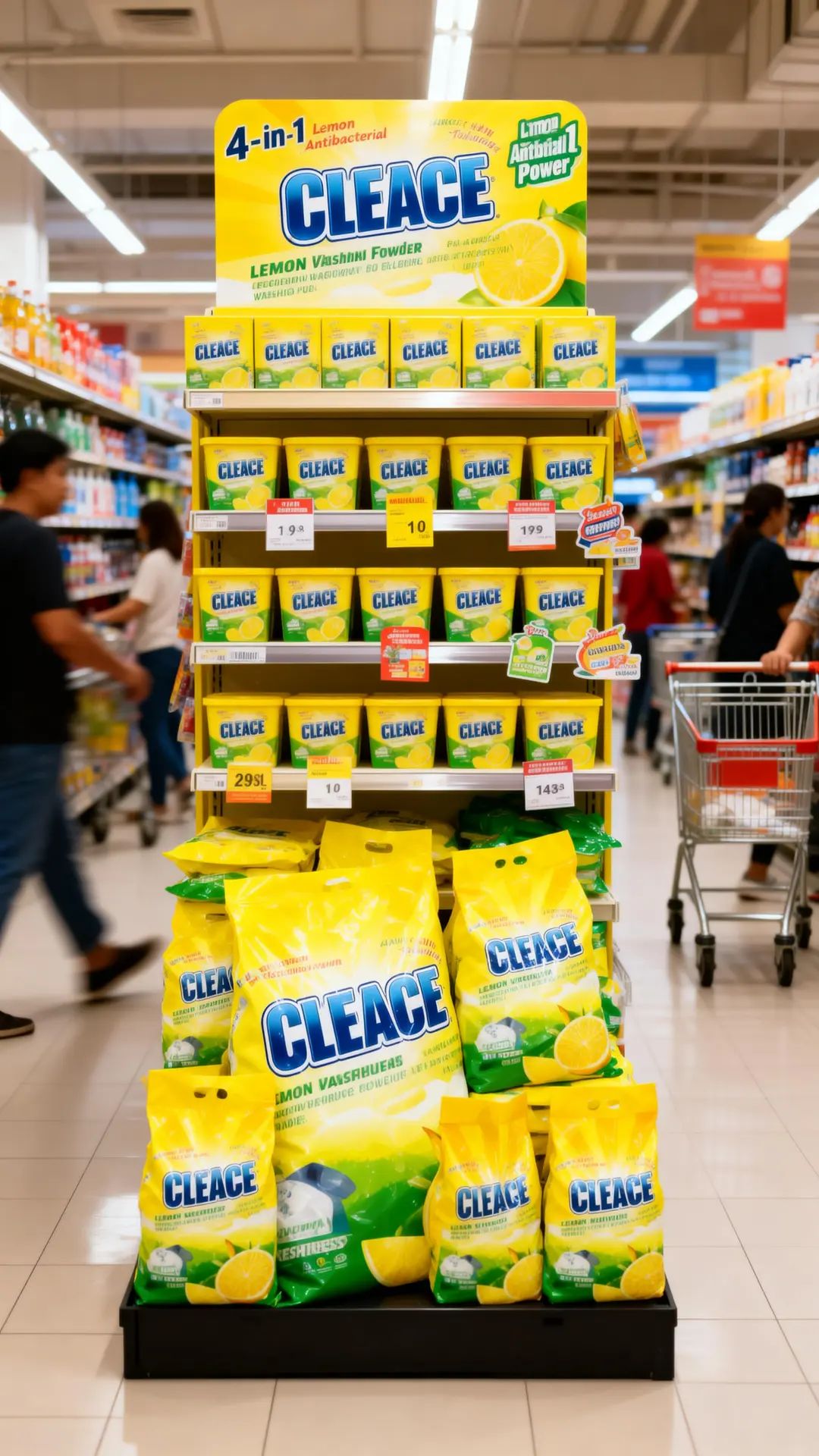 Strong visibility, strong rotation: CLEACE lemon perfumed washing powder is ready for your market.