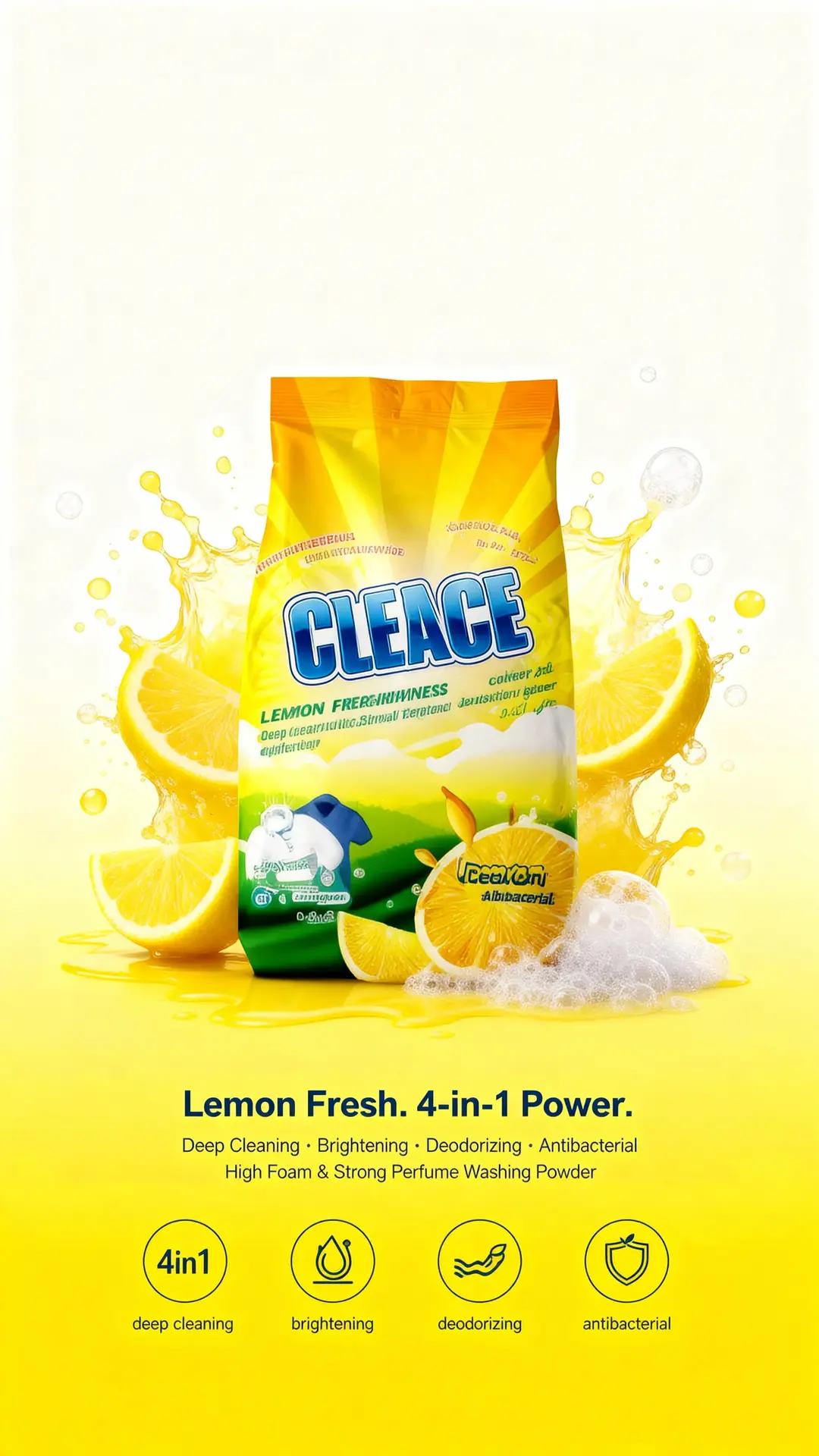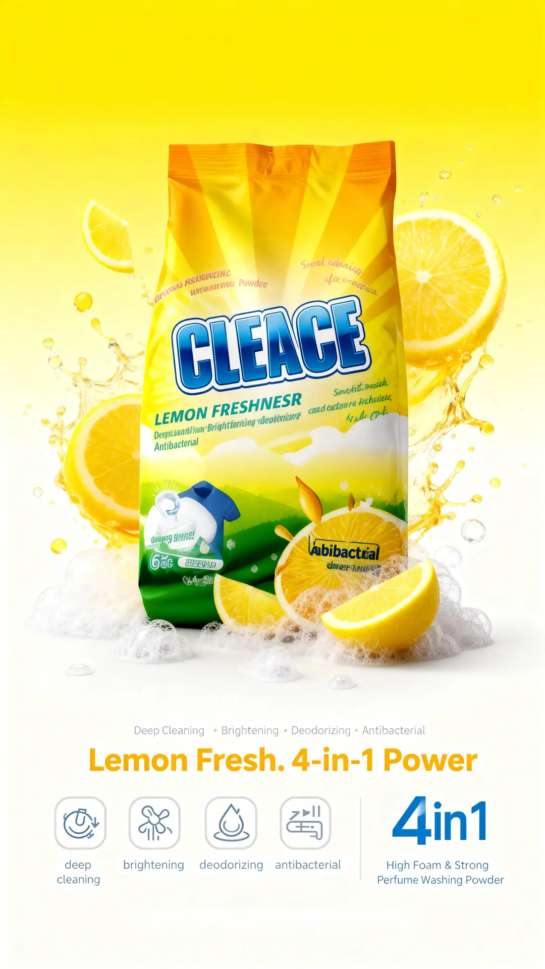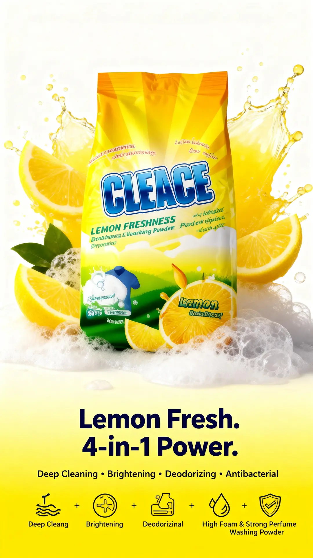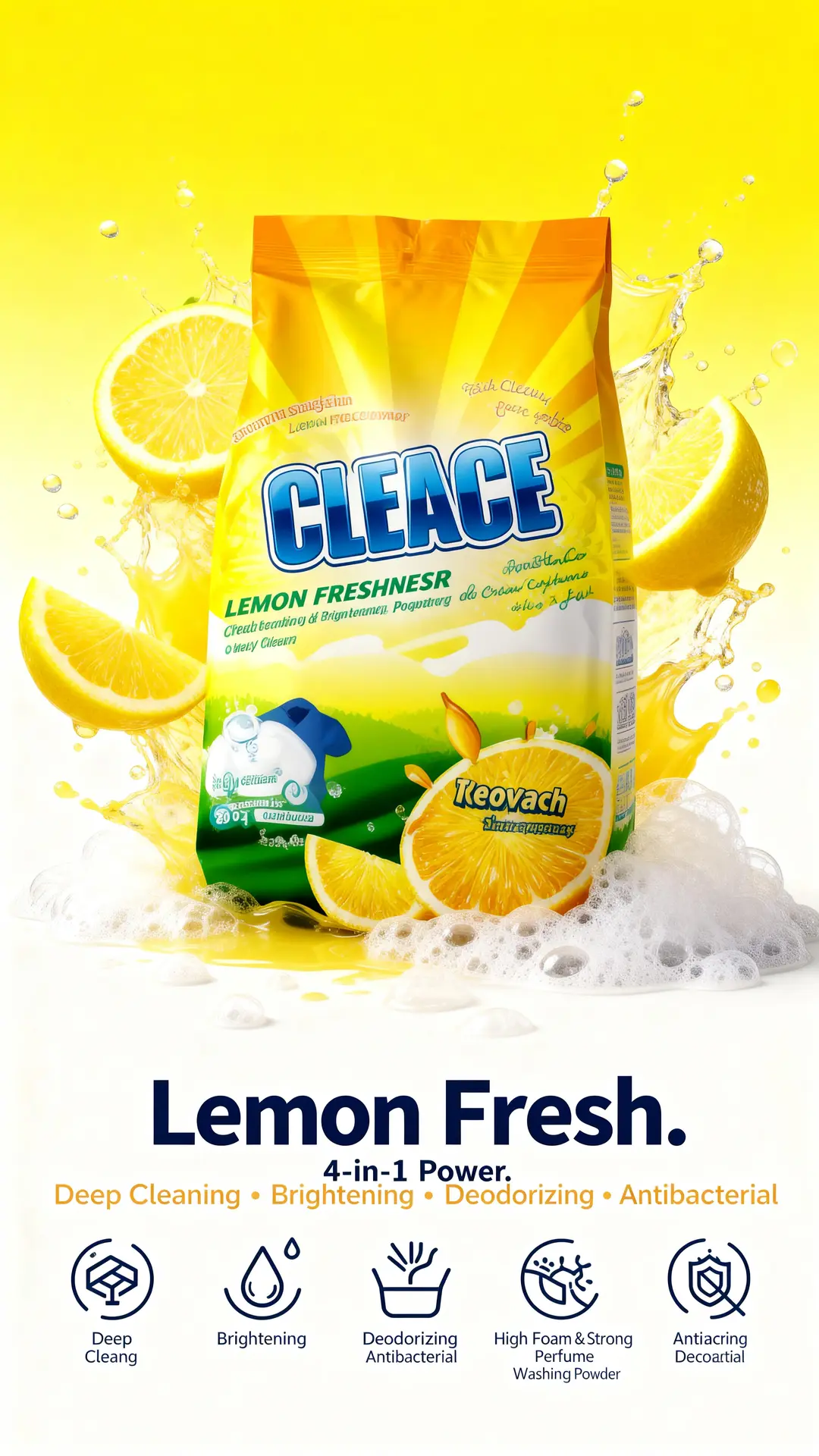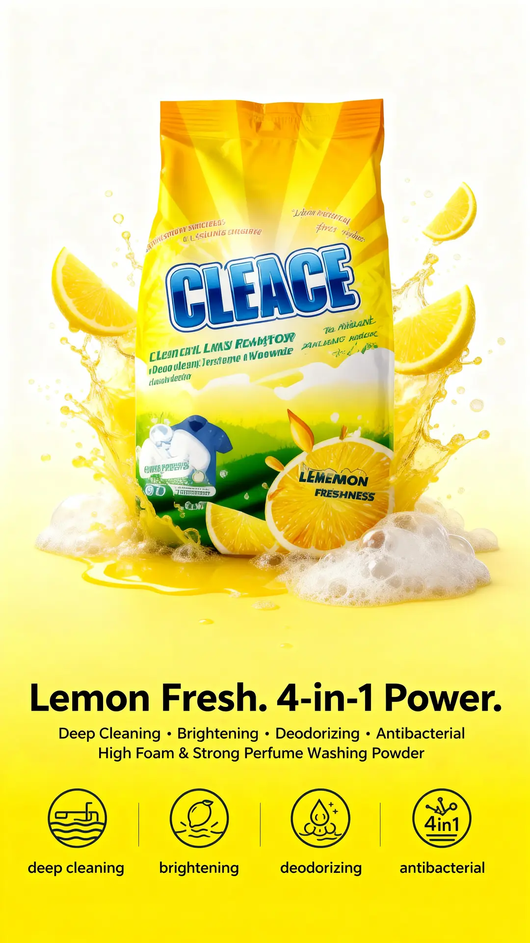#CLEACE #LaundryCare #Disinfection #WashingPowder #LemonFragrance #HighFoam #AOINcom #DistributorWanted #WholesaleBusiness #FMCG #Retailers #EmergingMarkets