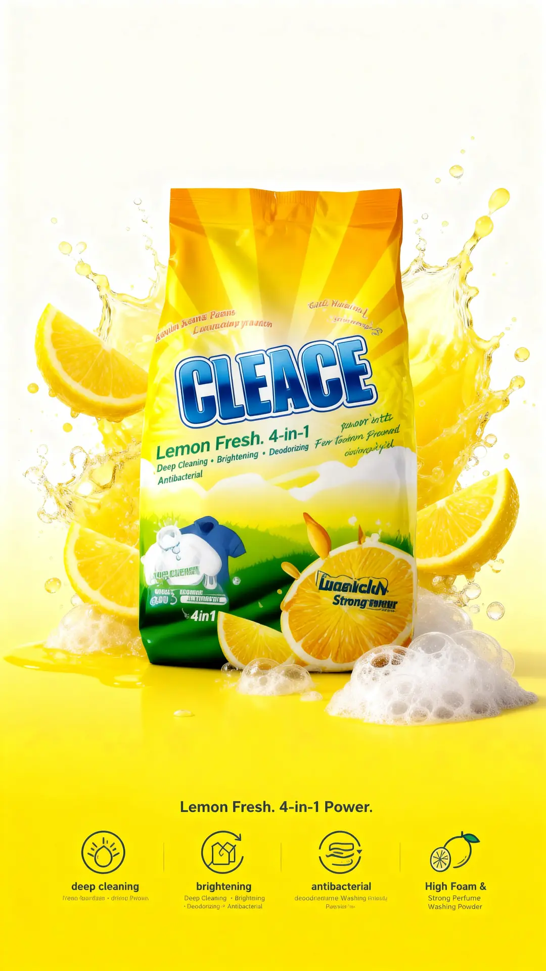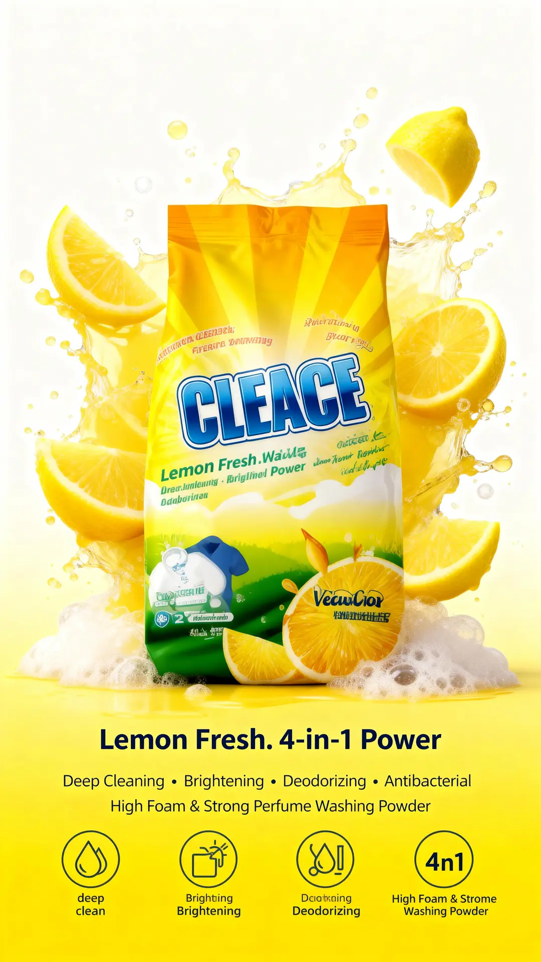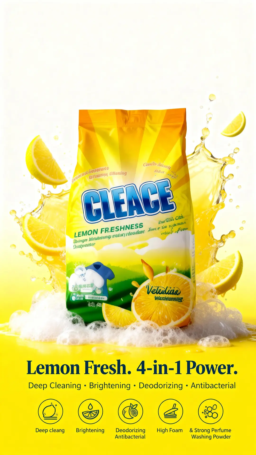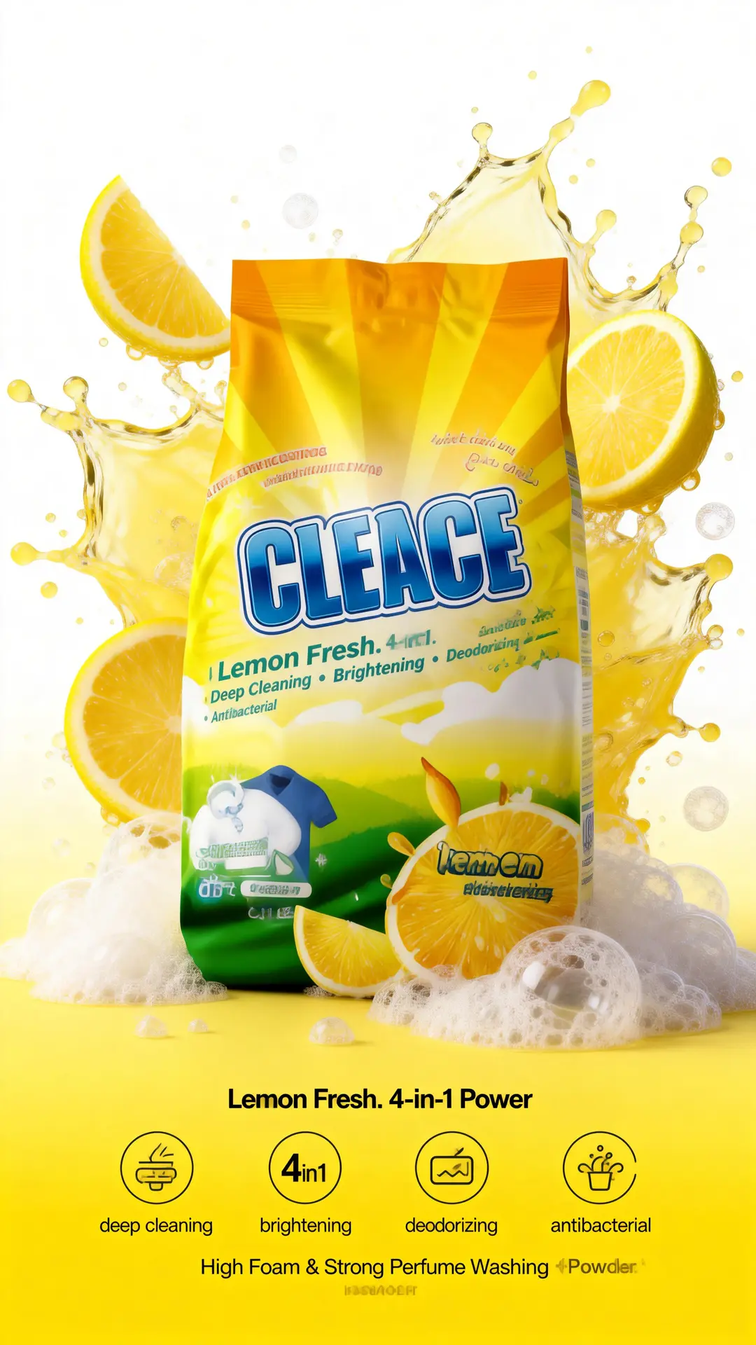 #CLEACE #LaundryCare #Disinfection #WashingPowder #LemonFragrance #HighFoam #AOINcom #DistributorWanted #WholesaleBusiness #FMCG #Retailers #EmergingMarkets