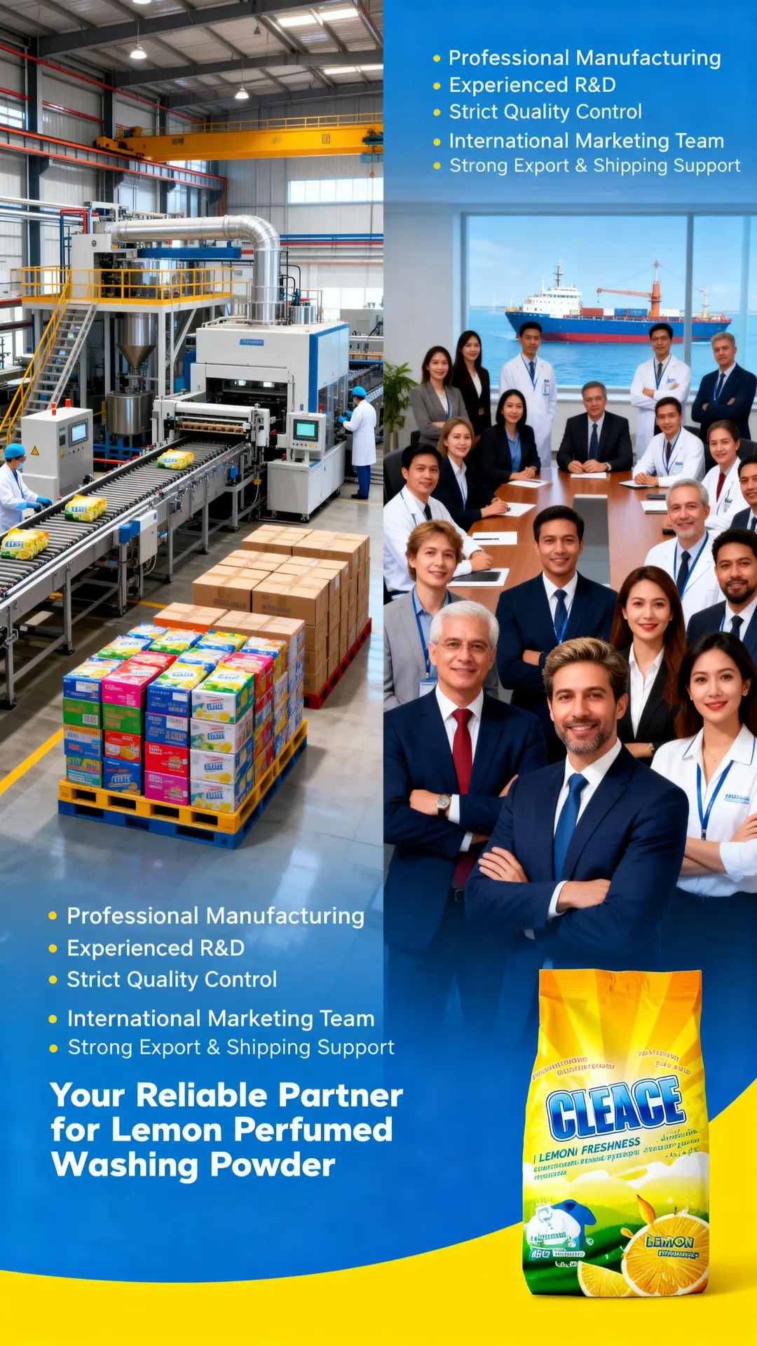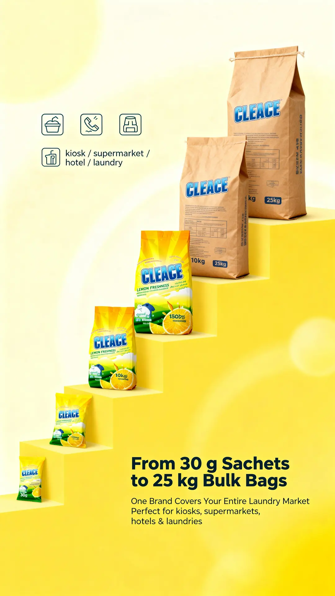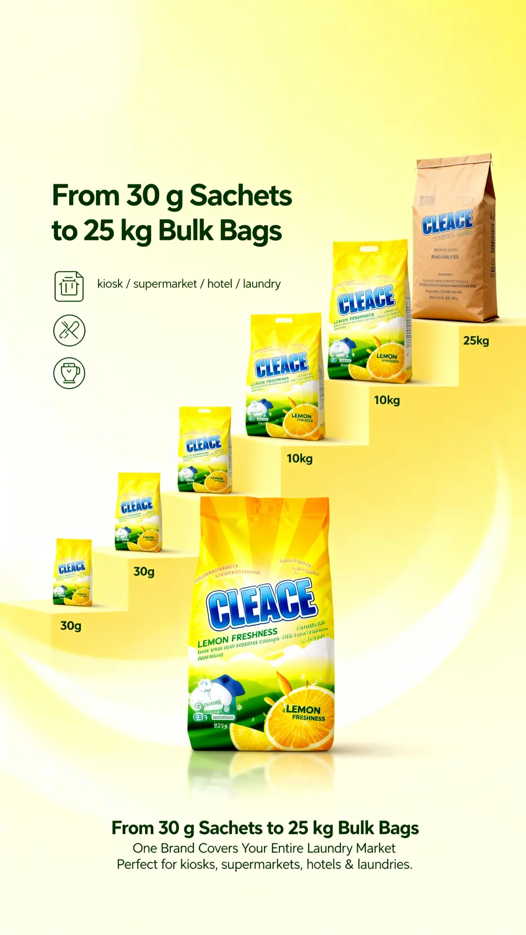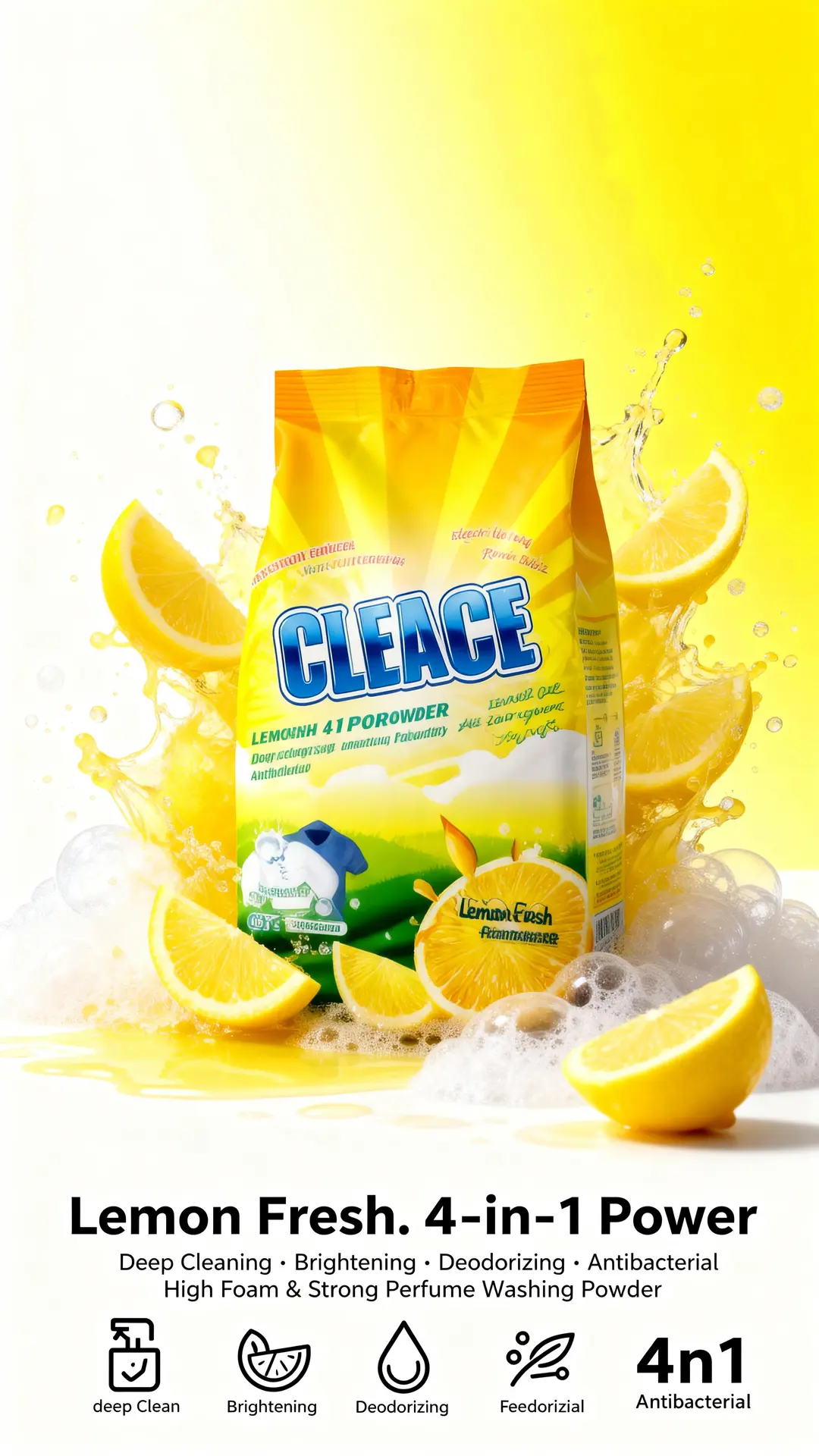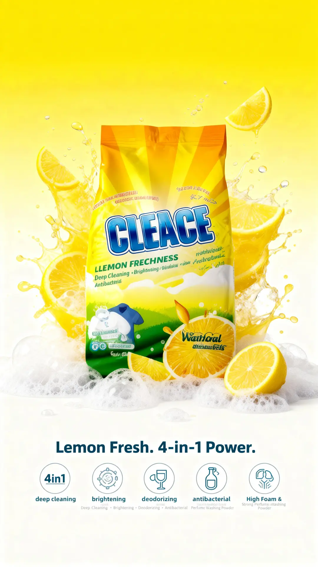#CLEACE #LaundryCare #Disinfection #WashingPowder #LemonFragrance #HighFoam #AOINcom #DistributorWanted #WholesaleBusiness #FMCG #Retailers #EmergingMarkets