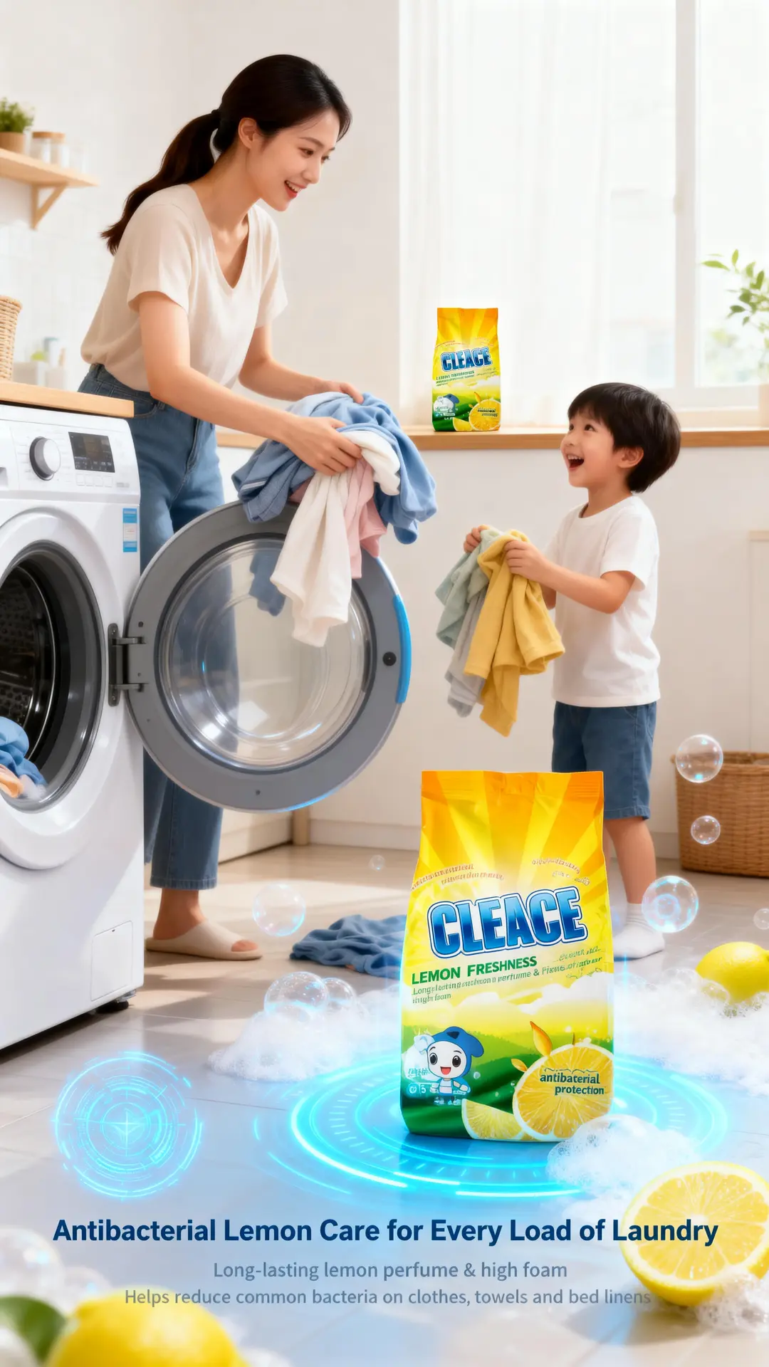 High foam, strong fragrance, deep clean – CLEACE brings professional laundry results to everyday families at an affordable price.